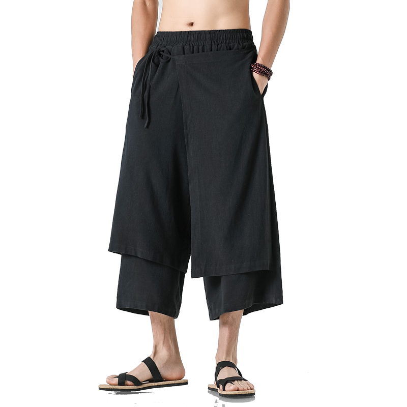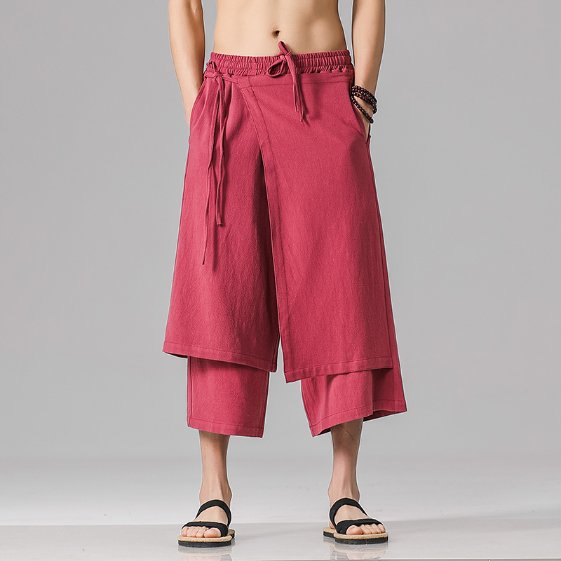 汉元素中国风亚麻飘逸仙气裙裤宋裤九分裤男民族复古风国潮嘻哈风