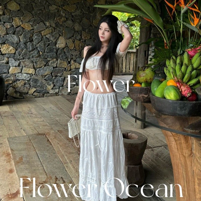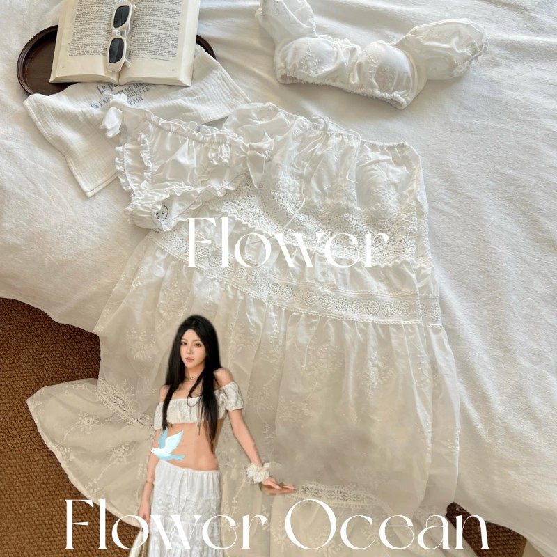 【白月光】纯欲性感bikini刺绣重工三件套泡泡袖遮肉海边度假泳衣