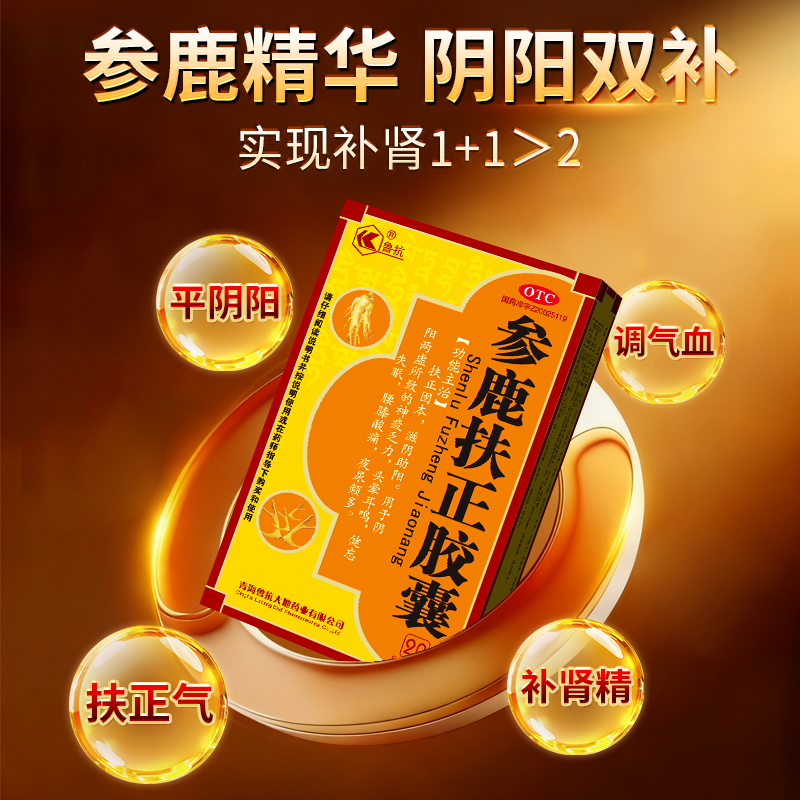 鲁抗参鹿扶正胶囊20粒滋阴助阳补肾调理男用手过度早泄药正品