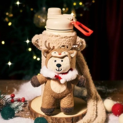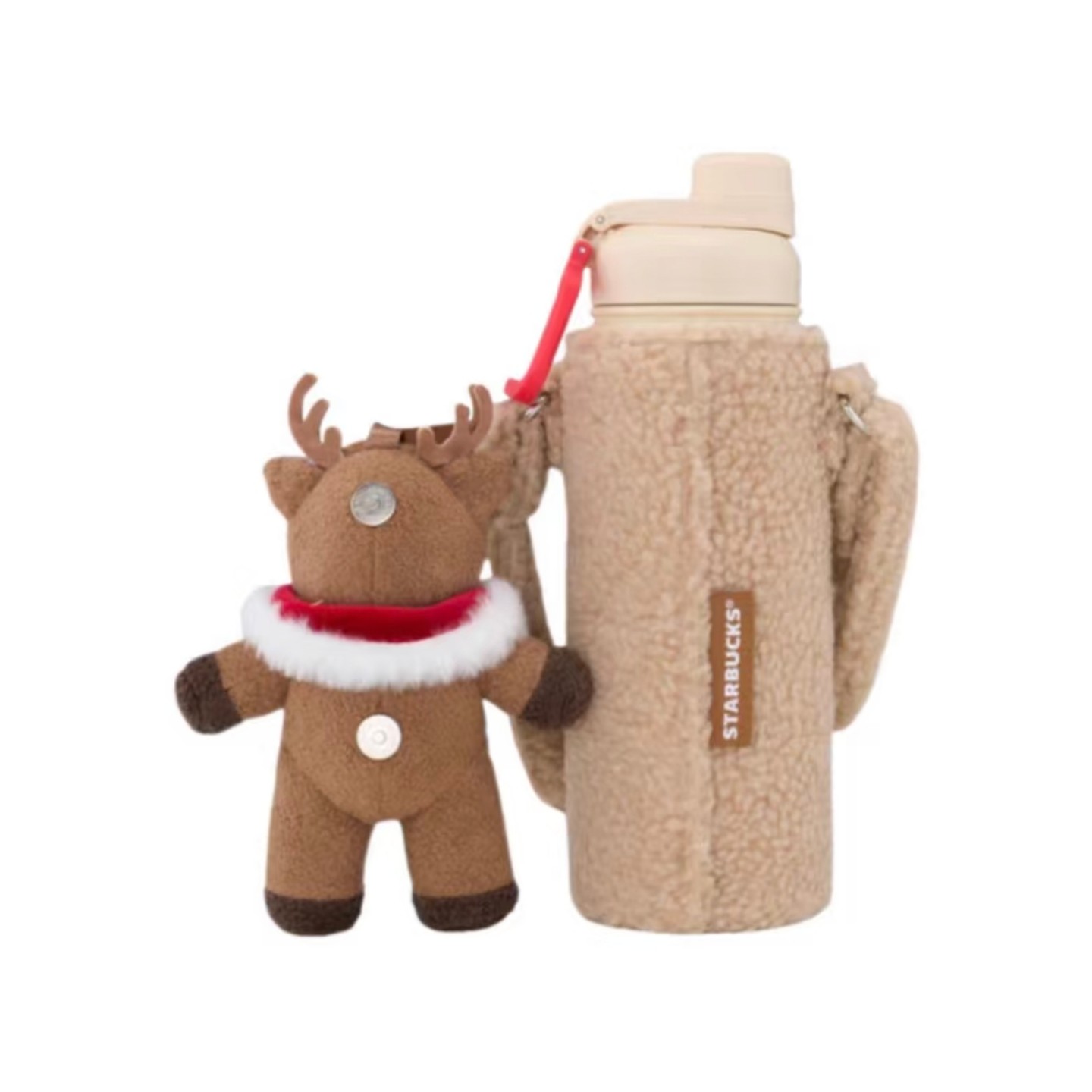星巴克杯子2025圣诞节暖意融融不锈钢随行杯配麋鹿熊店长挂件杯套