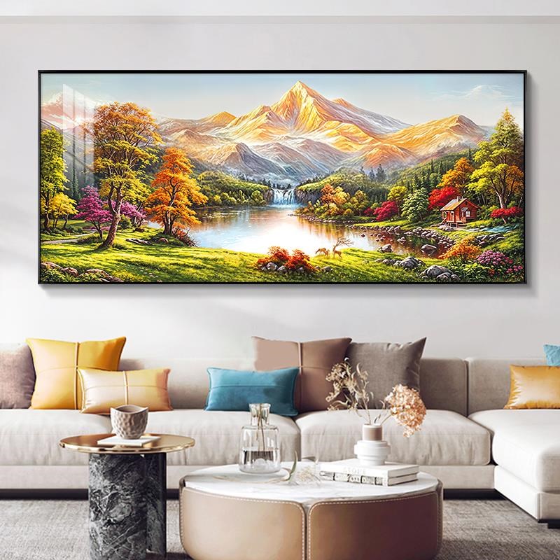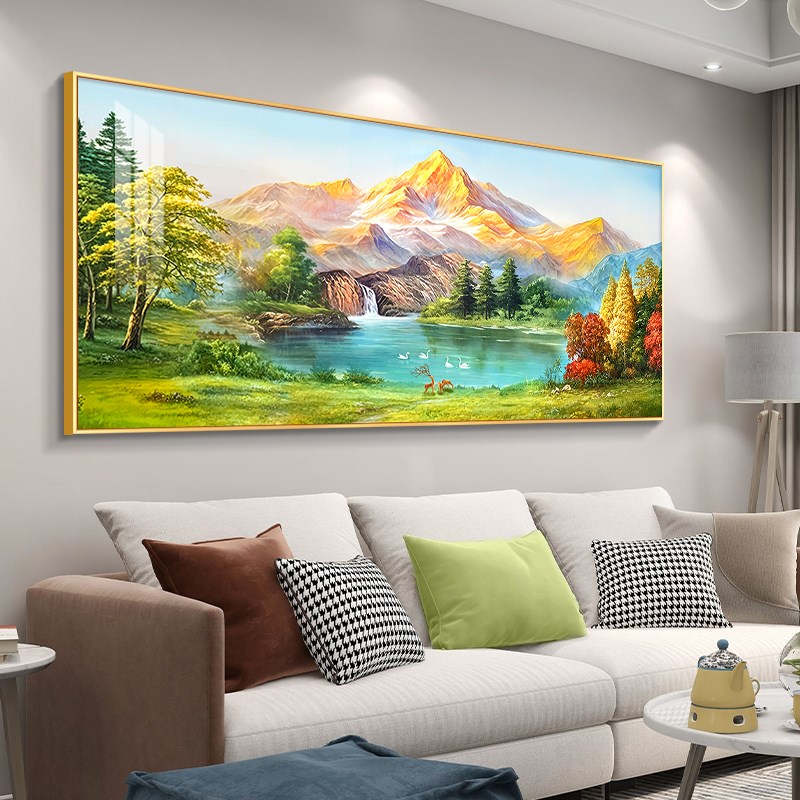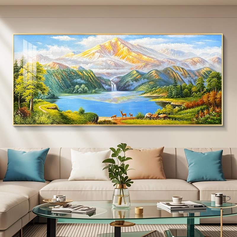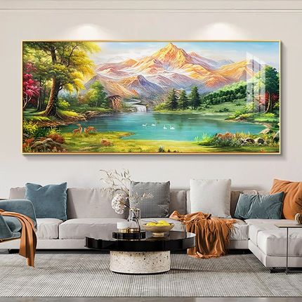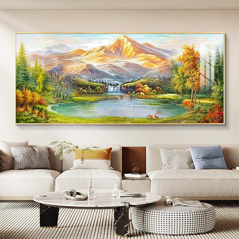 聚宝盆客厅装饰画山水画沙发背景墙挂画高档大气风景壁画手绘油画