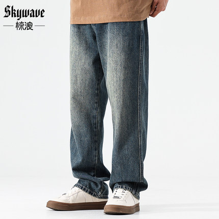 2026春季新款复古水洗牛仔裤男士直筒宽松大码裤子加肥加大休闲裤