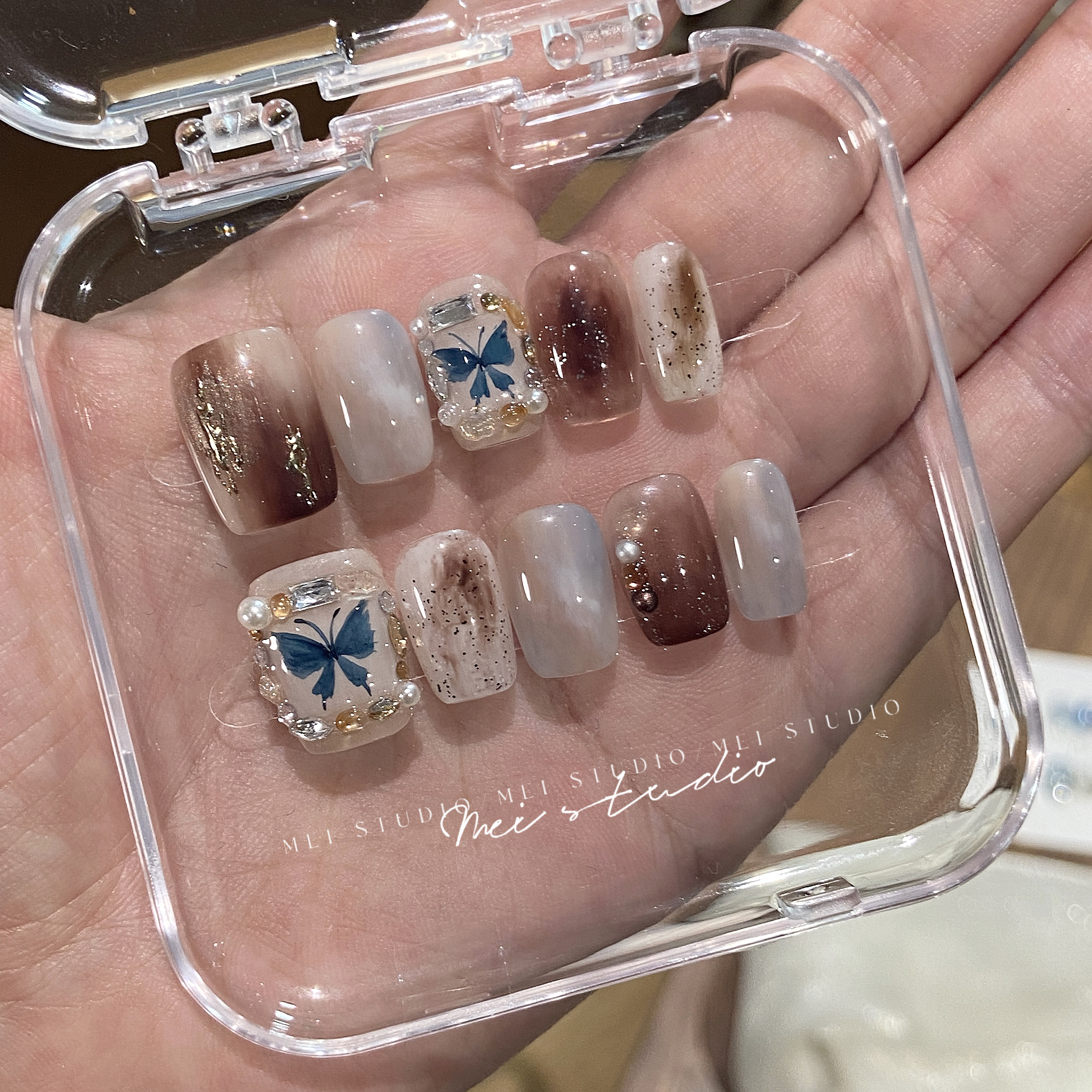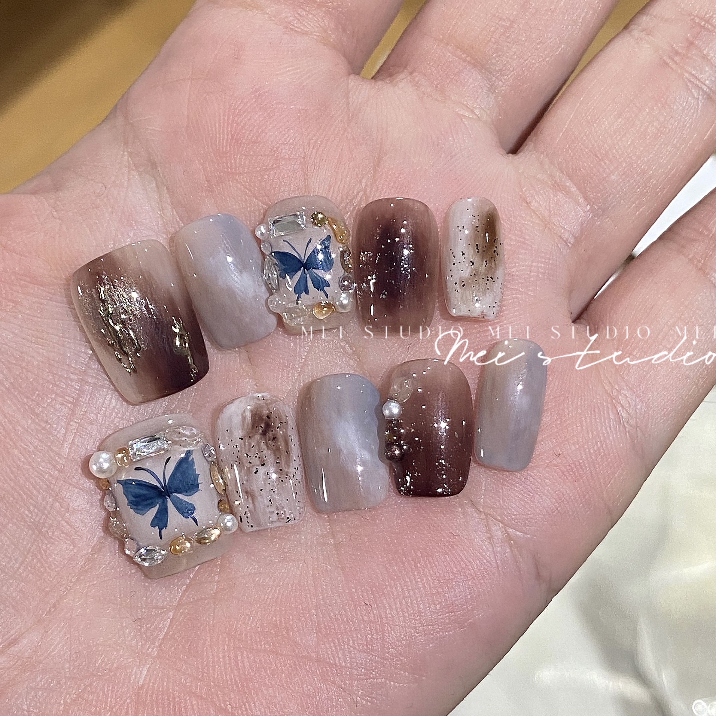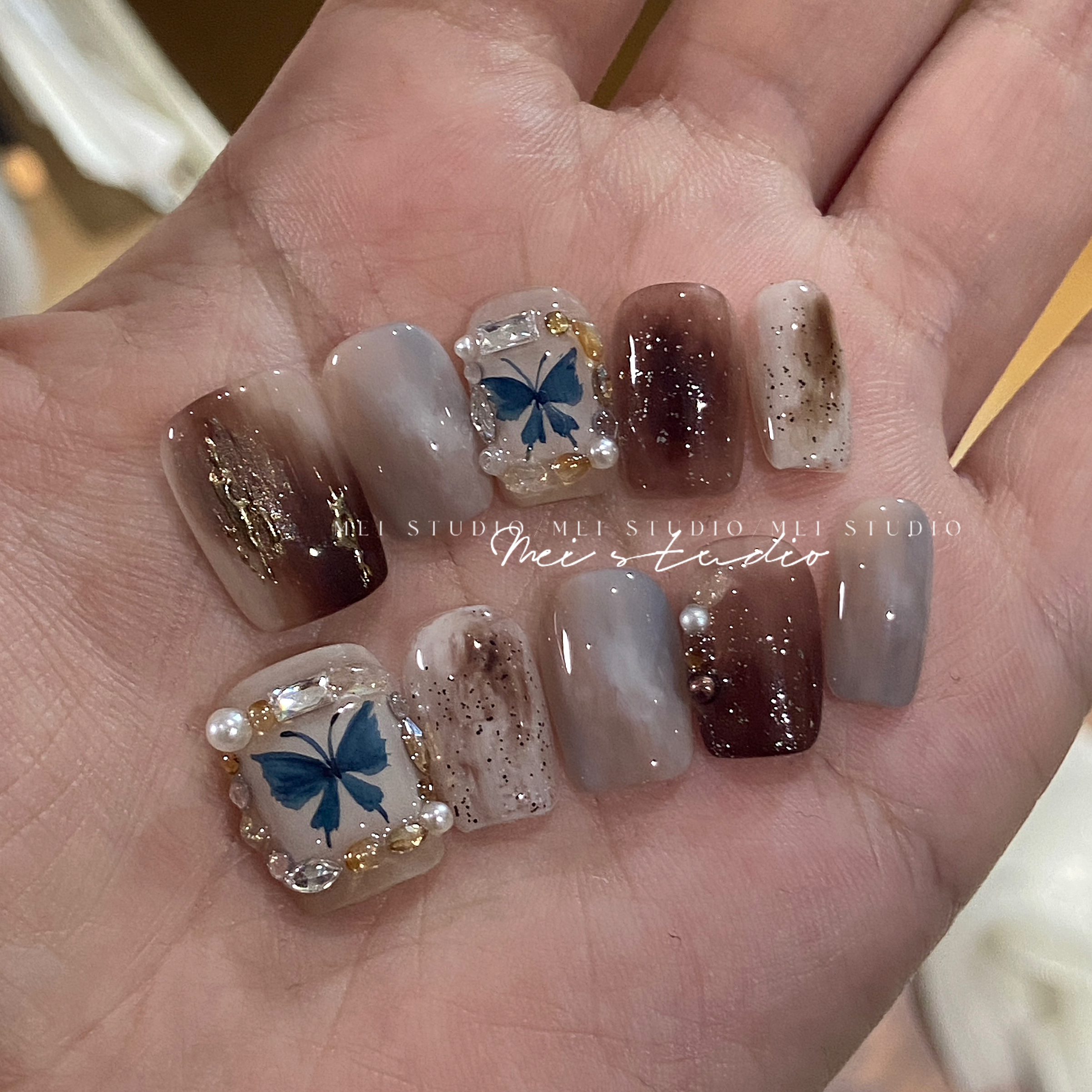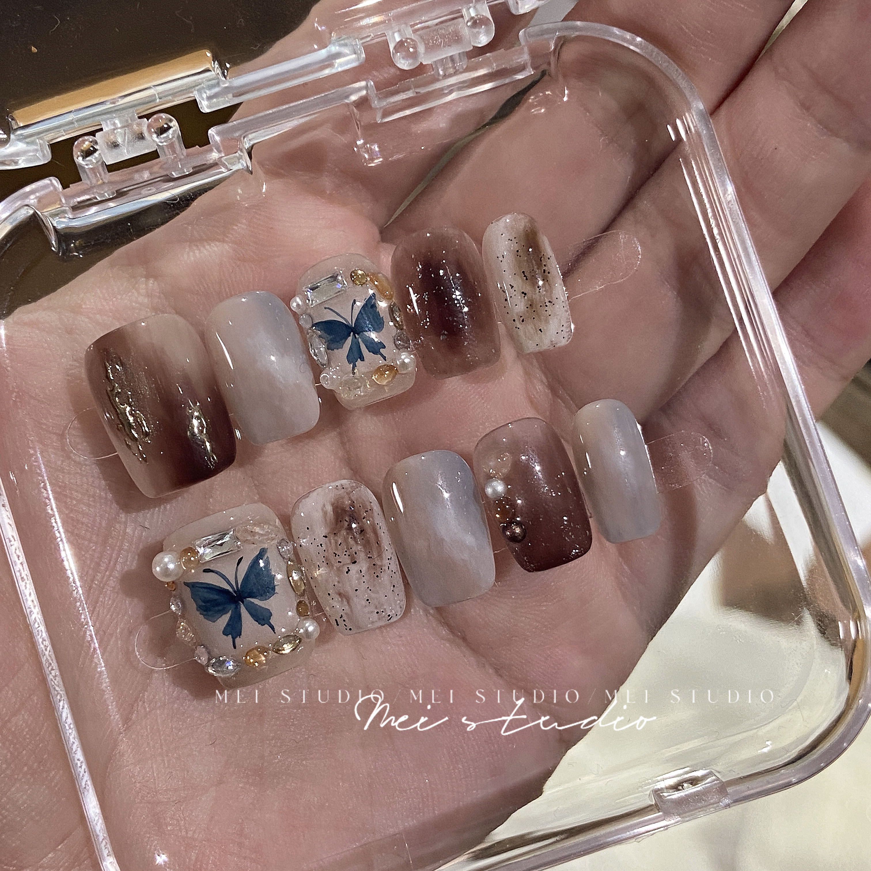蝴蝶相框|秋冬老钱风晕染小短甲高级感纯手工定制穿戴甲片成品