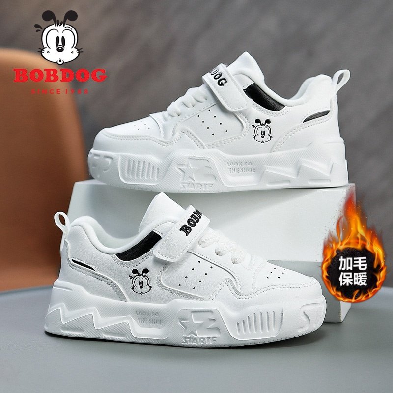 巴布豆冬季加绒儿童小白鞋