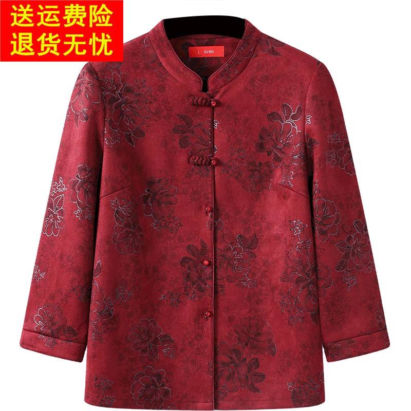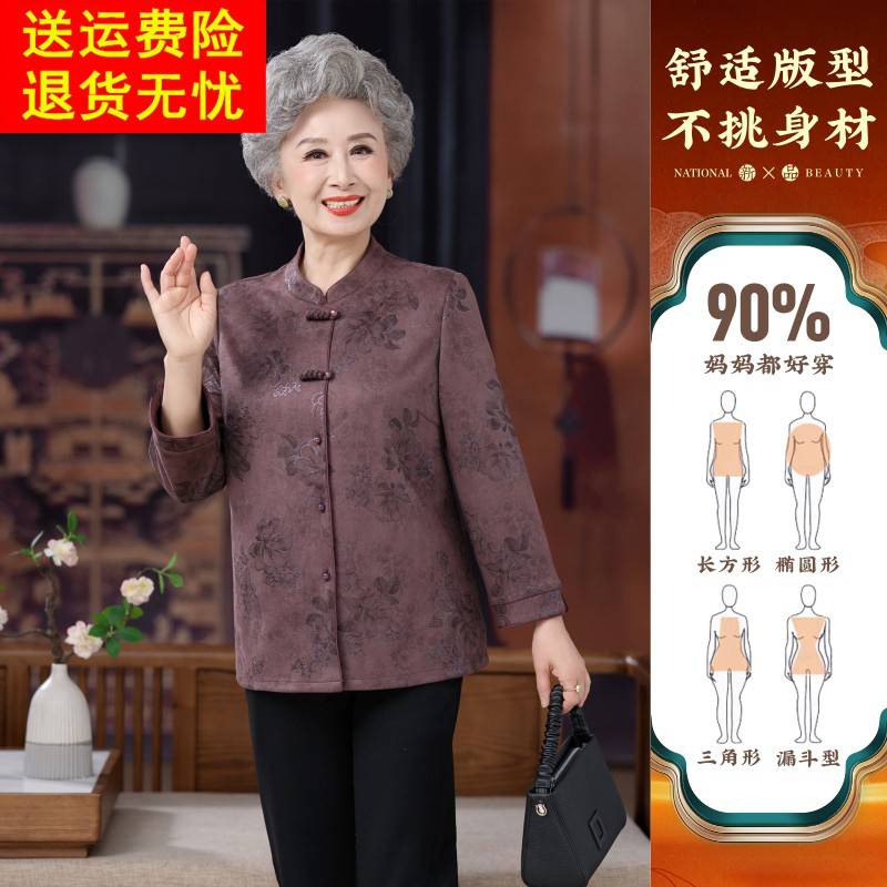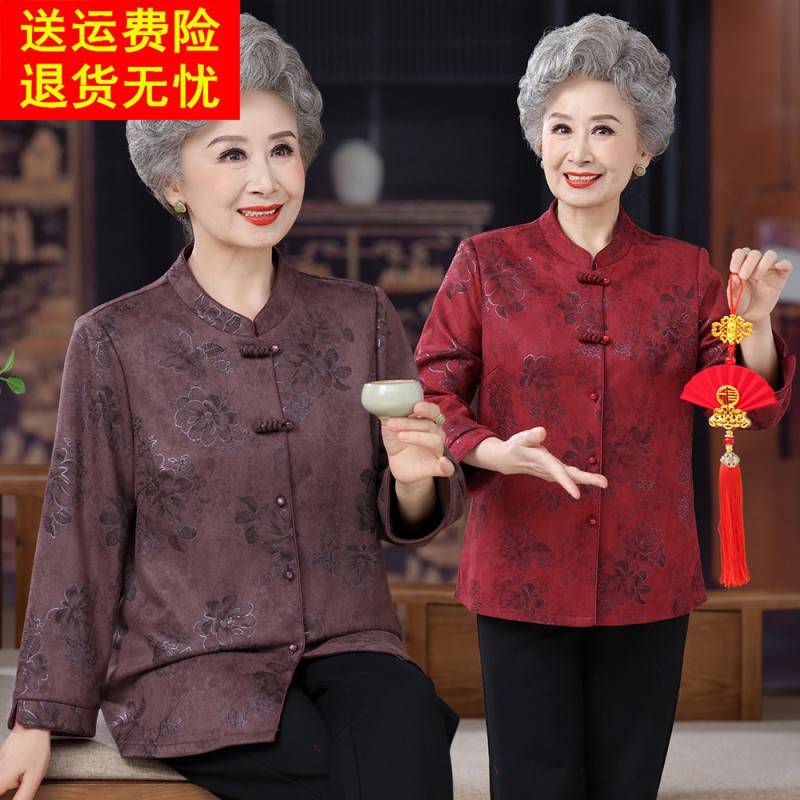 老年人女秋装奶奶衬衫长袖新中式盘扣老人衣服老太太唐装妈妈衬衣