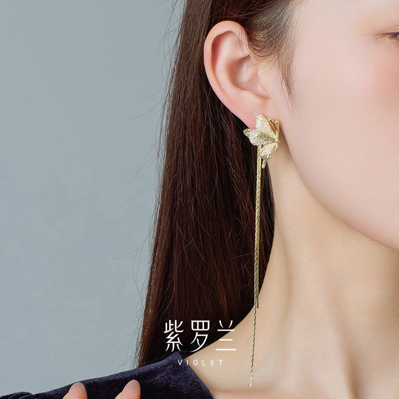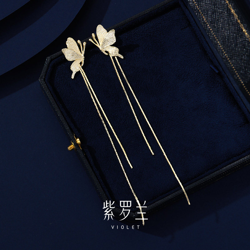 【紫罗兰正版】金流蝶耳钉轻奢精致长款流苏蝴蝶耳饰生日礼物