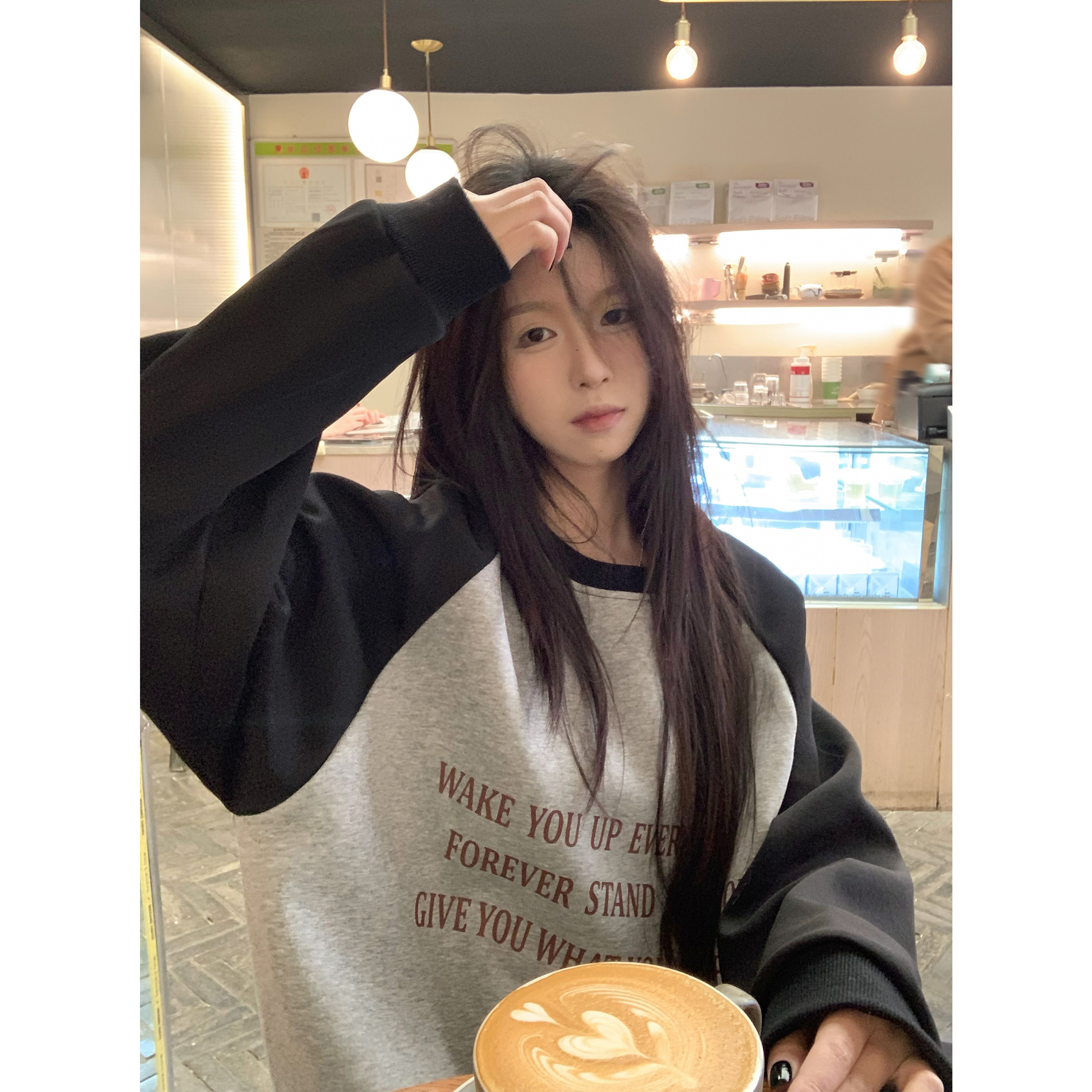 HVIVI美式复古插肩袖卫衣女春秋圆领套头字母宽松休闲百搭上衣