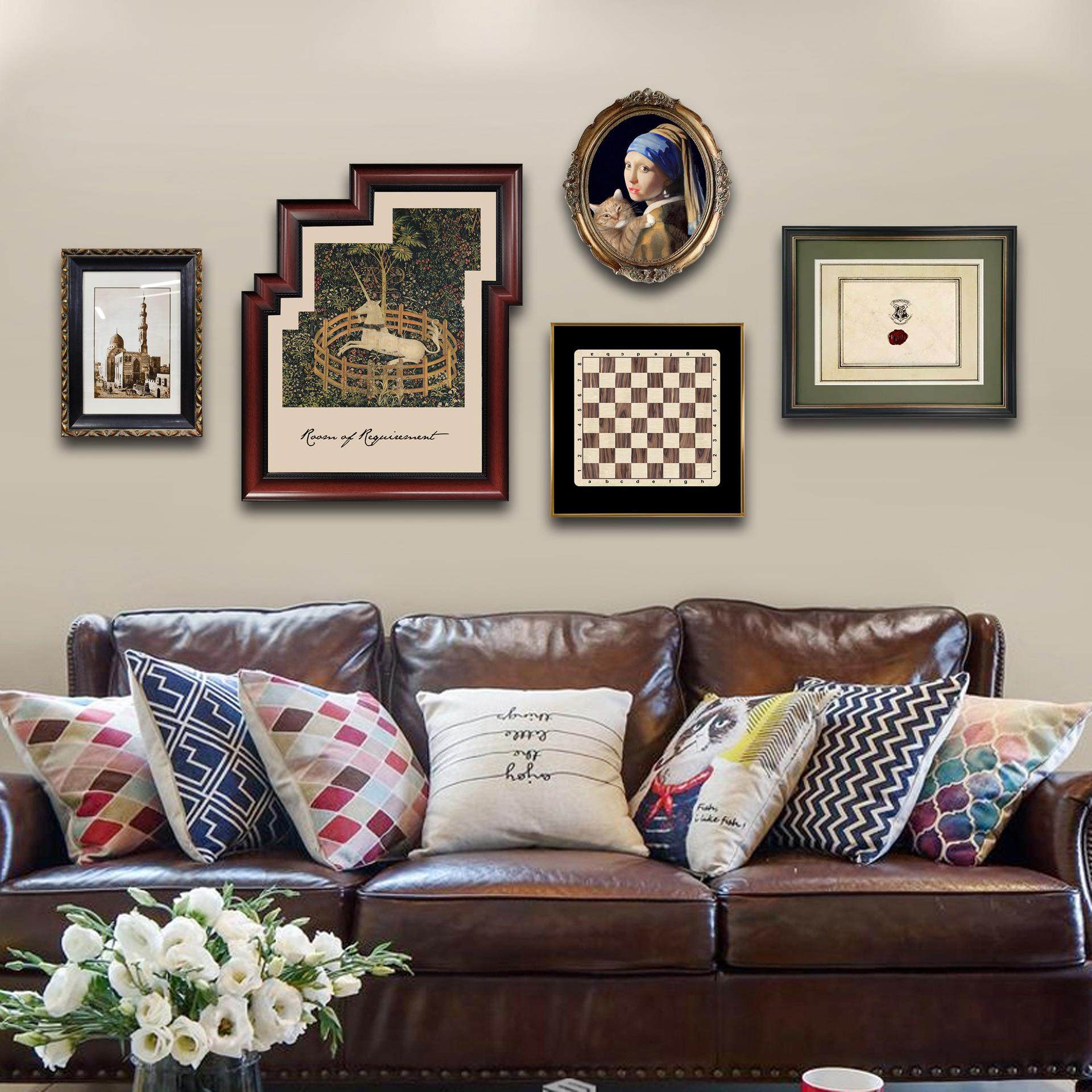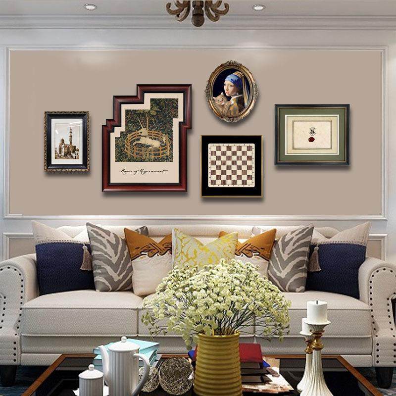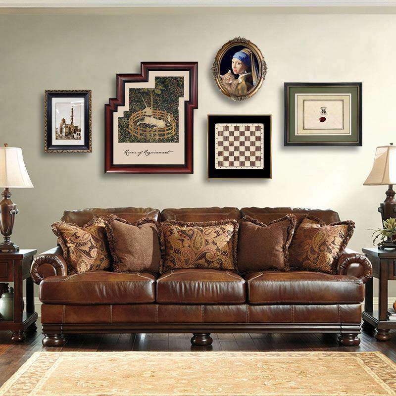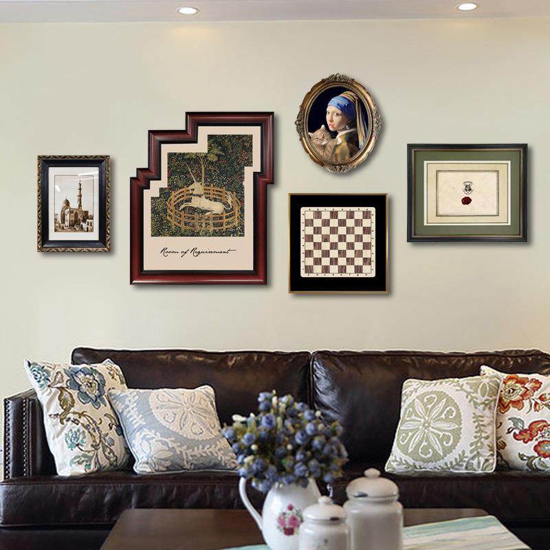 美式小众组合艺术客厅背景墙装饰画欧式复古餐厅壁画挂画