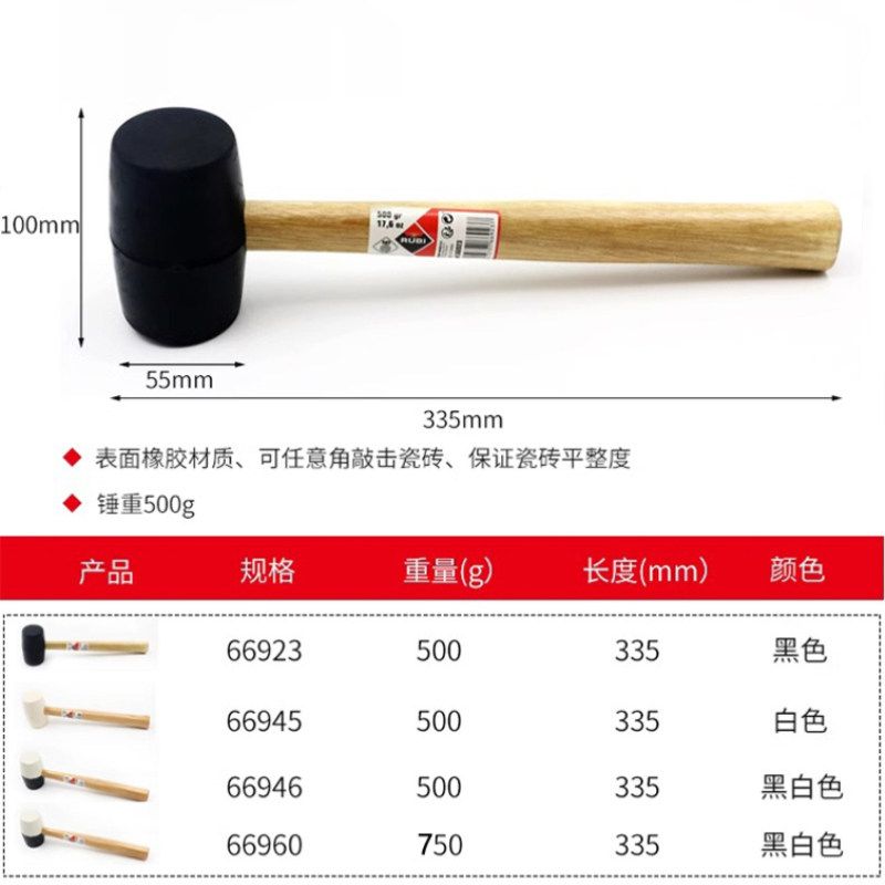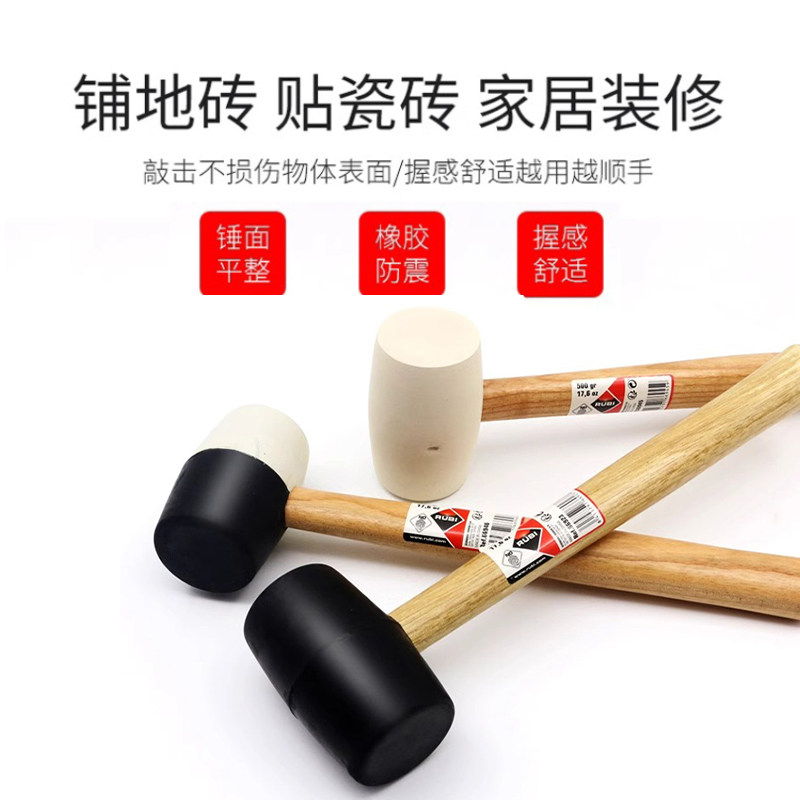 RUBI瑞比锤子橡胶锤楼上瓷砖铺贴安装敲打木柄实心牛筋橡皮锤弹力
