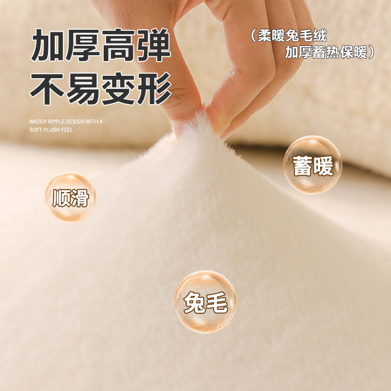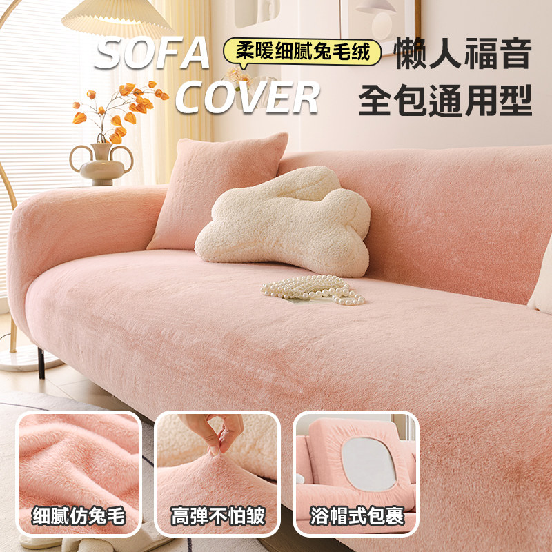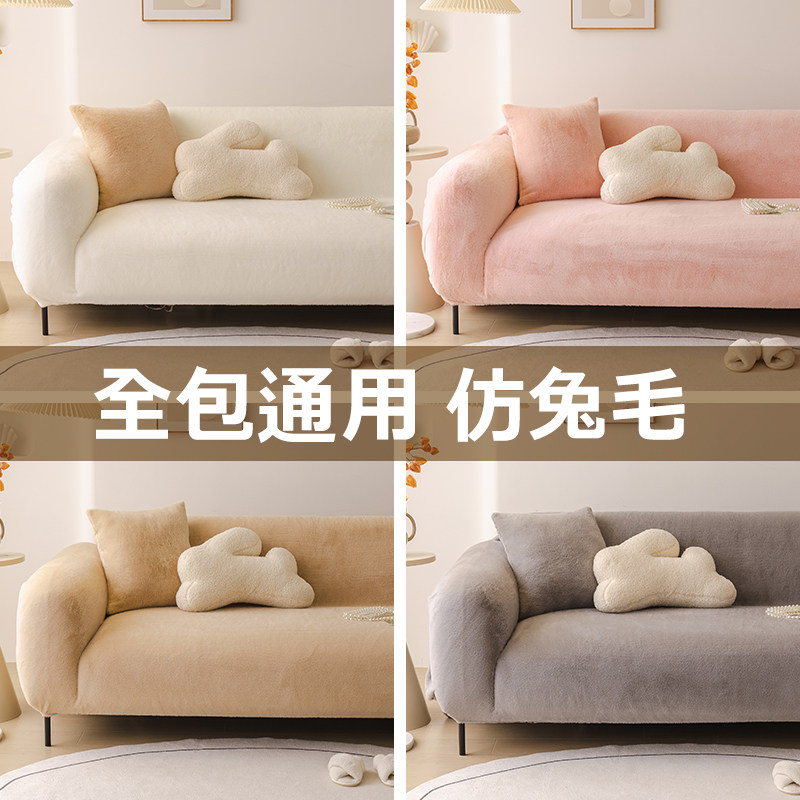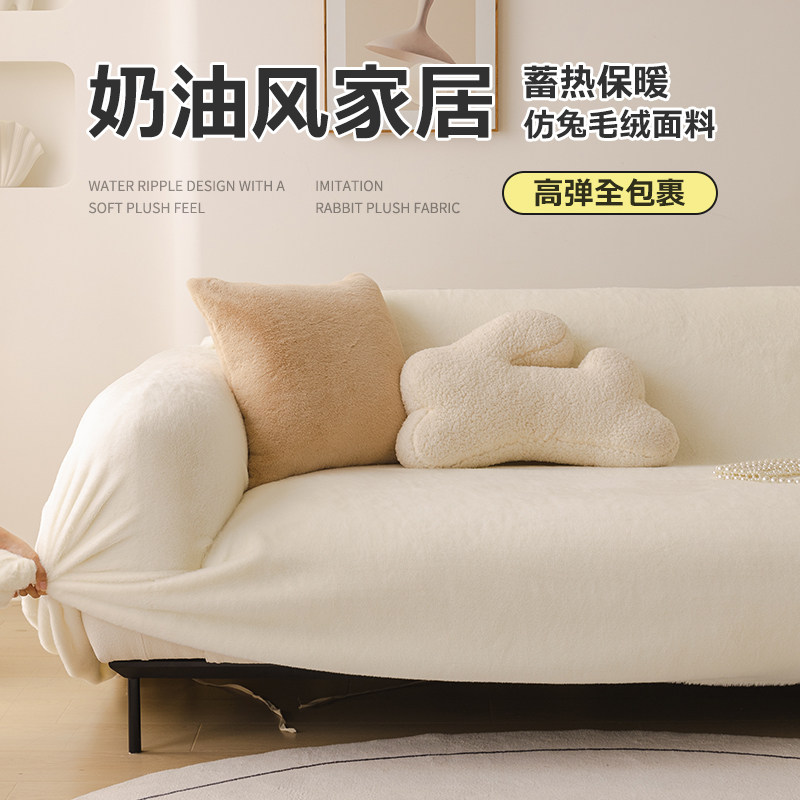 仿兔毛绒全包沙发罩笠纯色防猫抓沙发套巾高级感防尘盖布奶油风