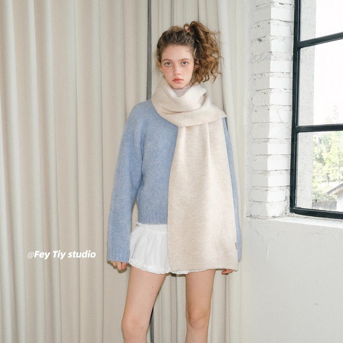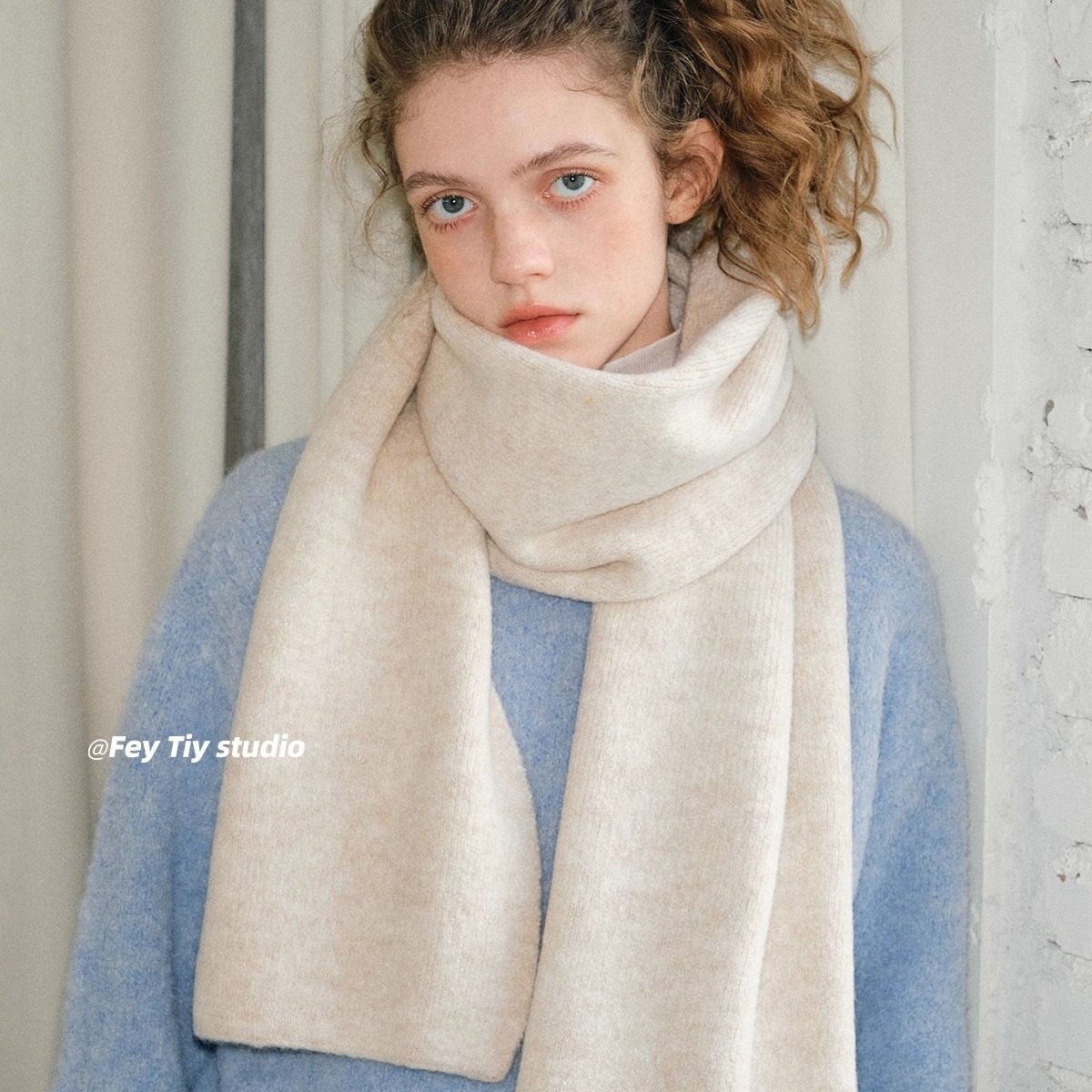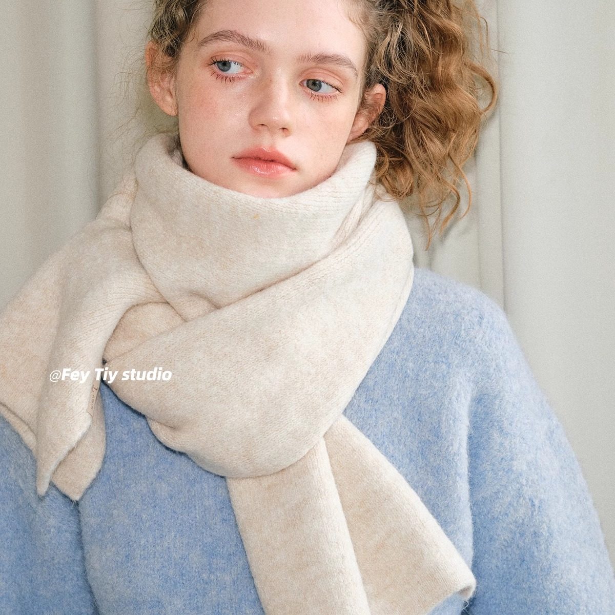 feytiy 软糯细腻含羊毛针织纯色围巾女 百搭冬季新款保暖围脖披肩