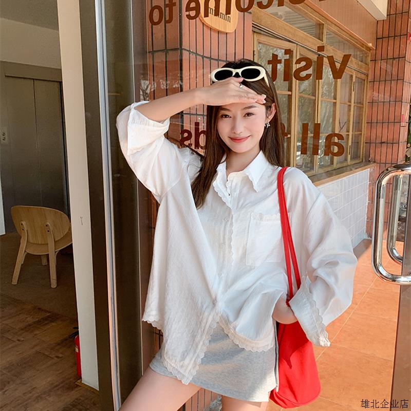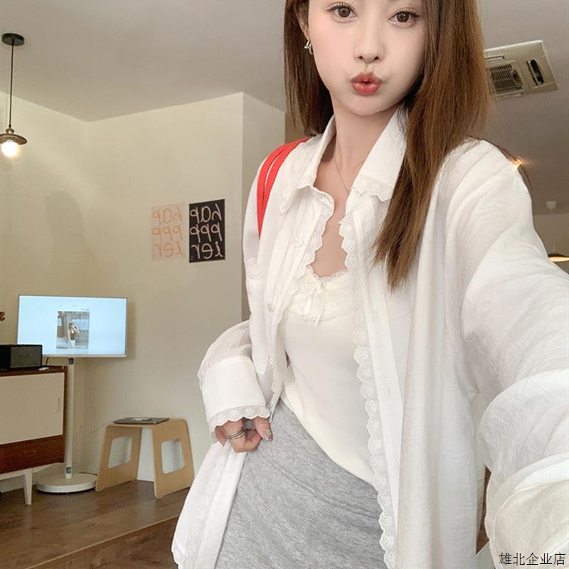 法式蕾丝拼接白色衬衫女2025秋季新款外套上衣气质慵懒风宽松衬衣