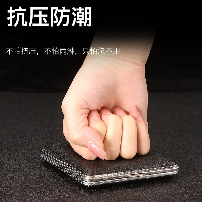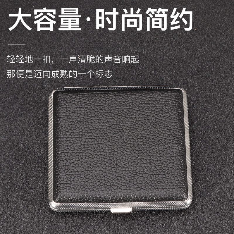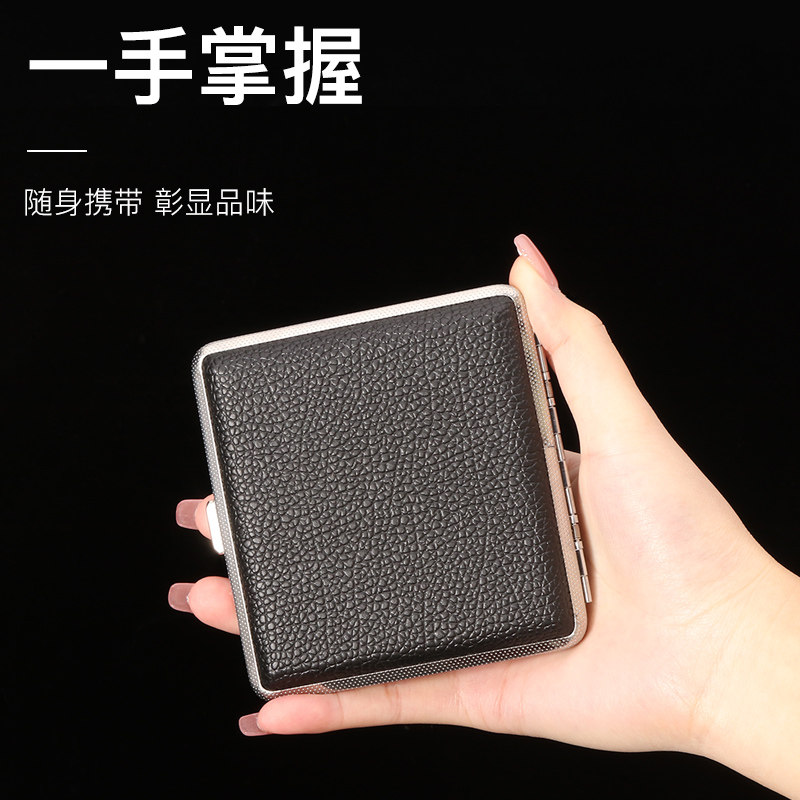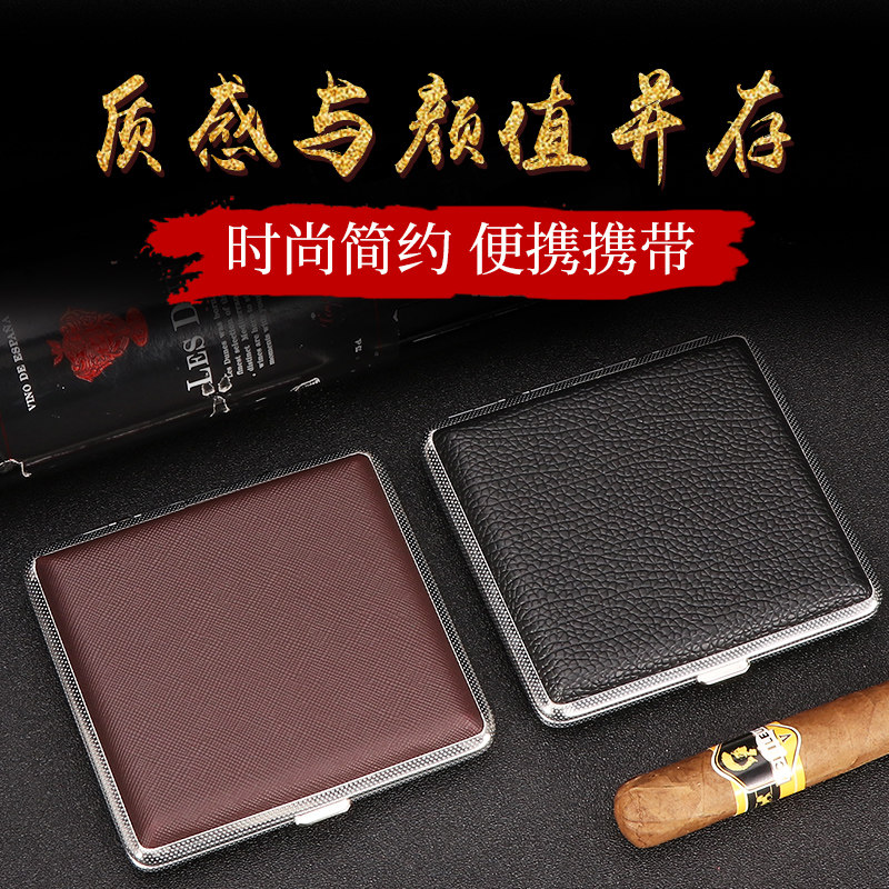 福腾烟盒20支装男士便携皮质金属夹片烟盒创意手卷防压烟夹粗烟盒