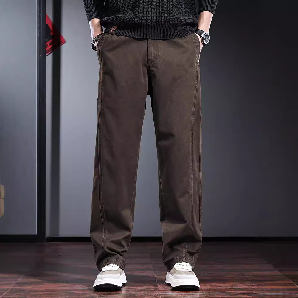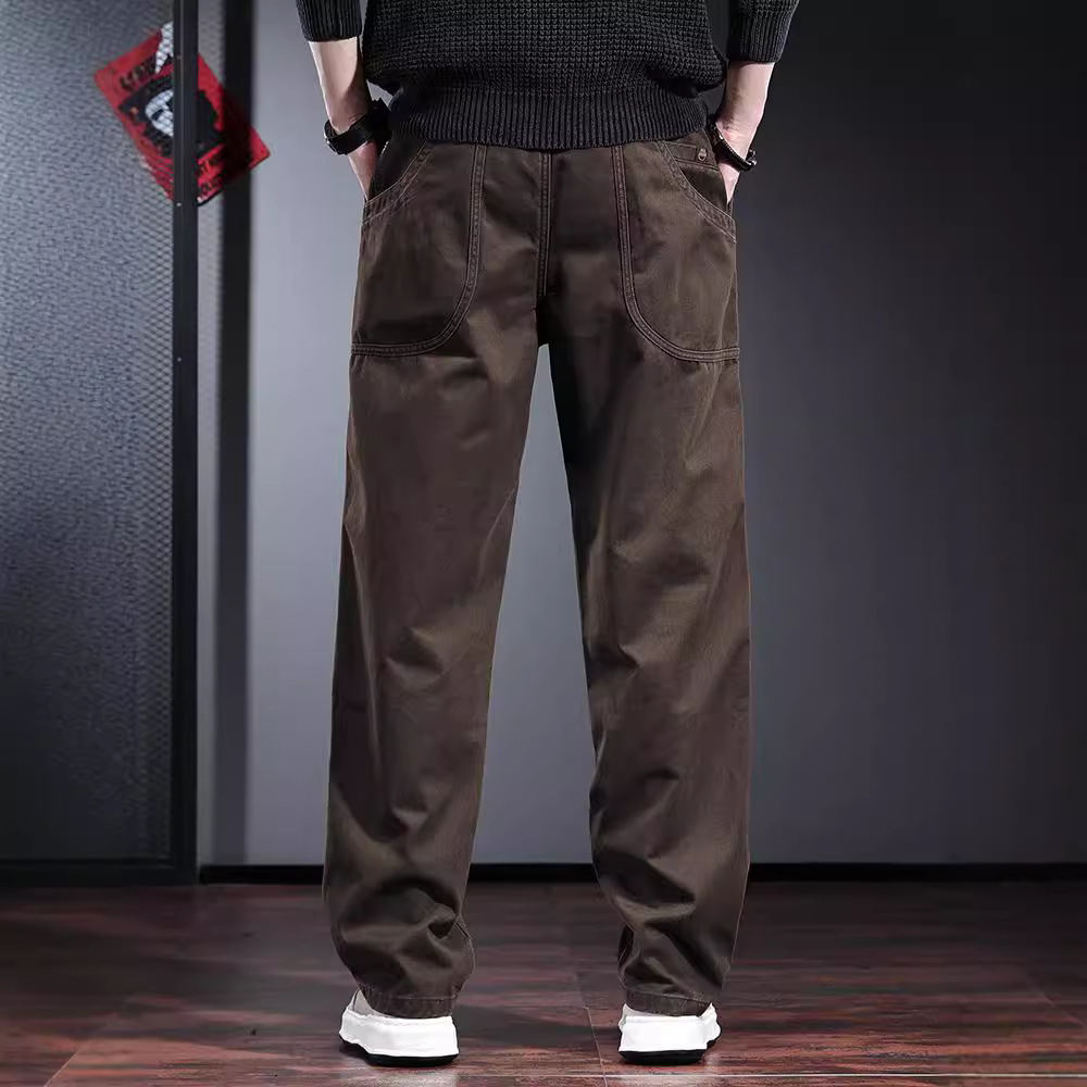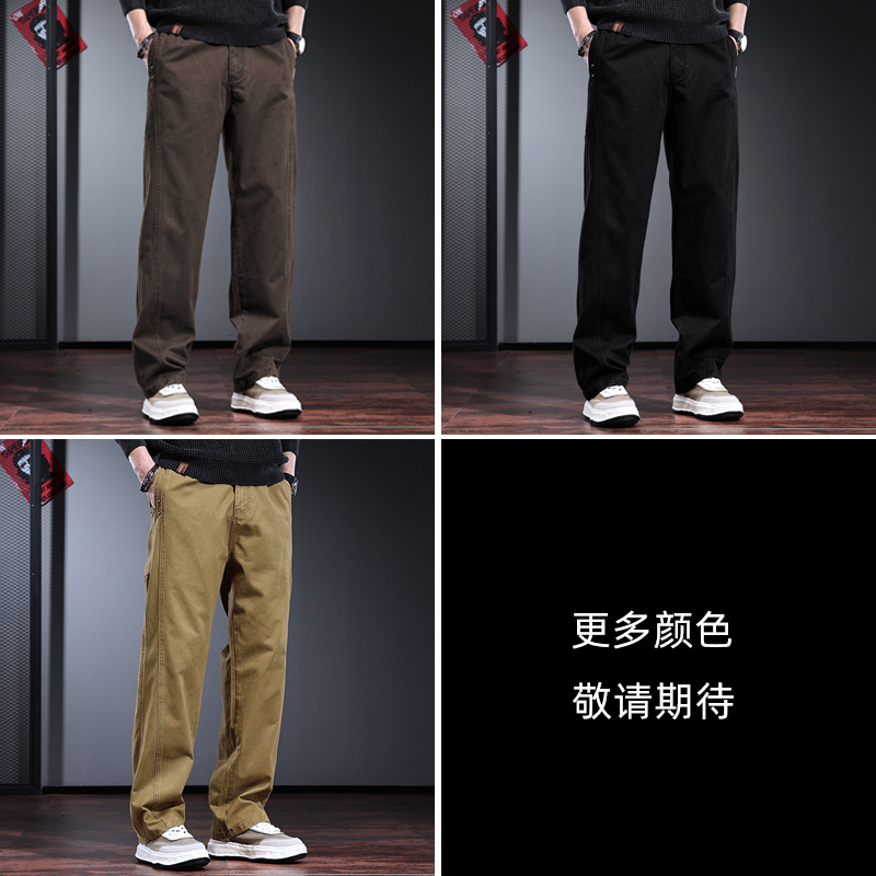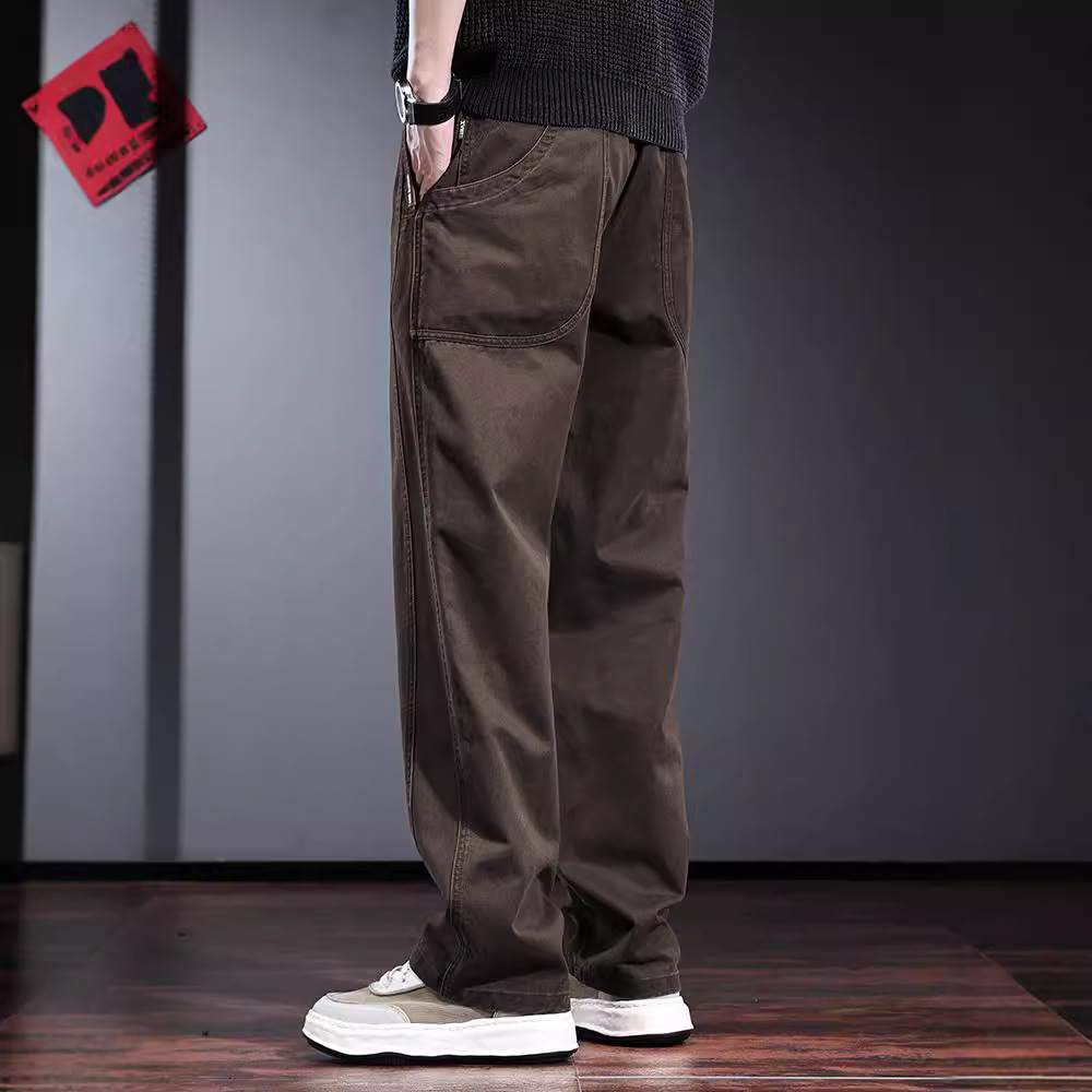 春秋季高端工装裤子男宽松直筒长裤欧美简约美式复古男士休闲裤潮