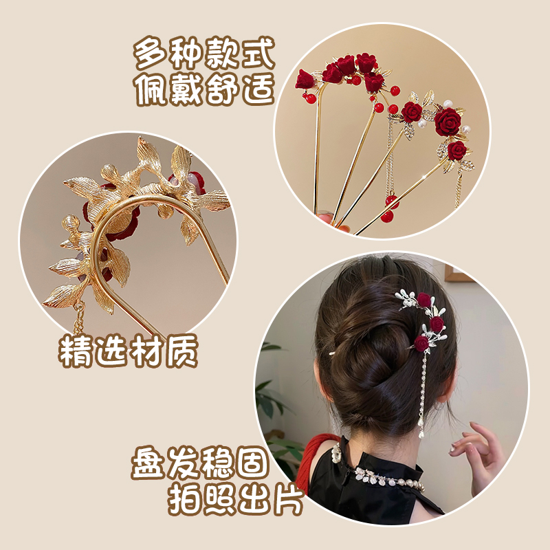 新娘订婚头饰流苏u型发簪女新中式簪子喜婆婆盘发结婚敬酒服发饰