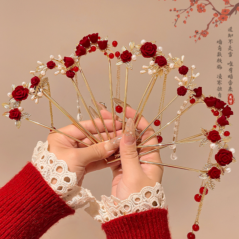 订婚结婚敬酒专用~新娘玫瑰发簪