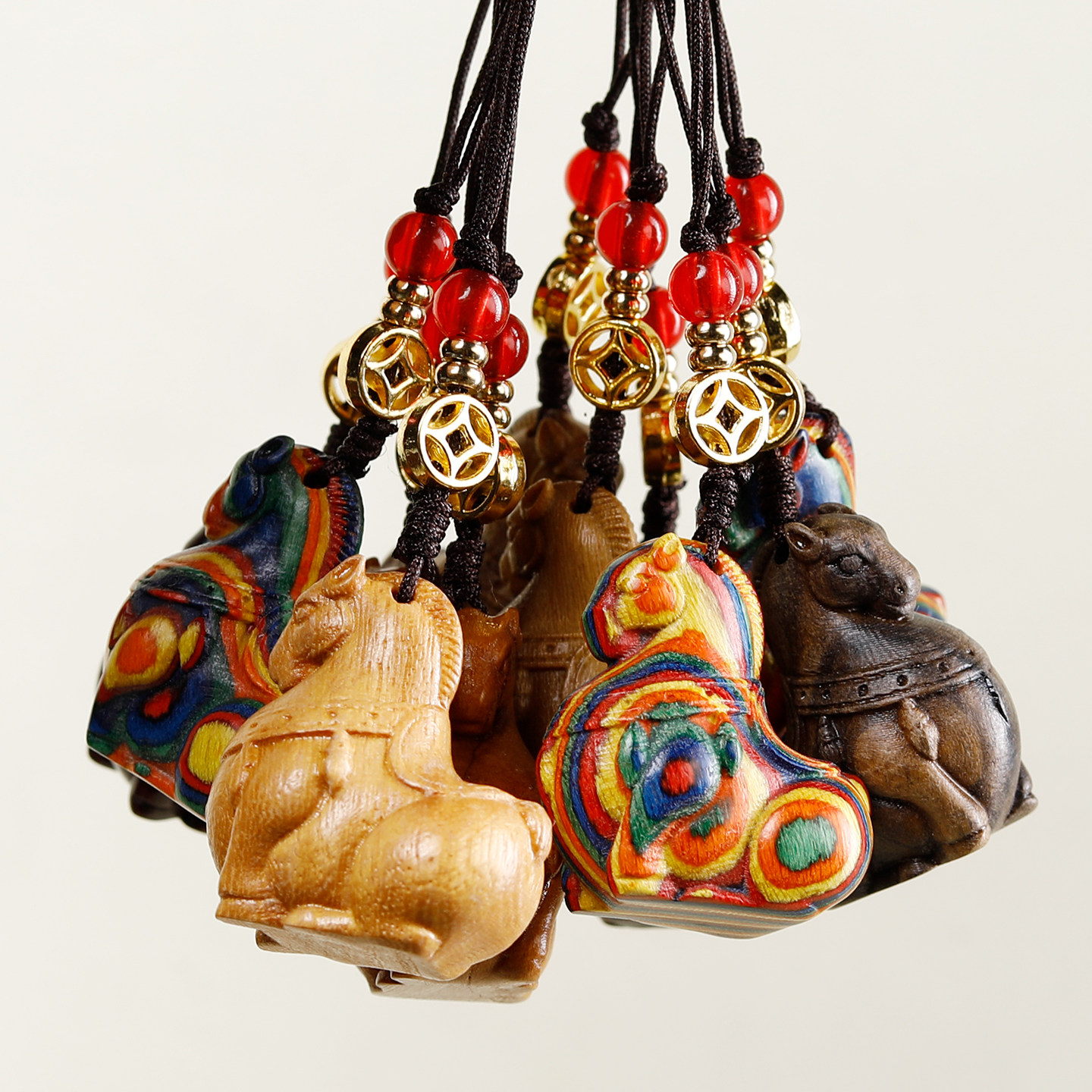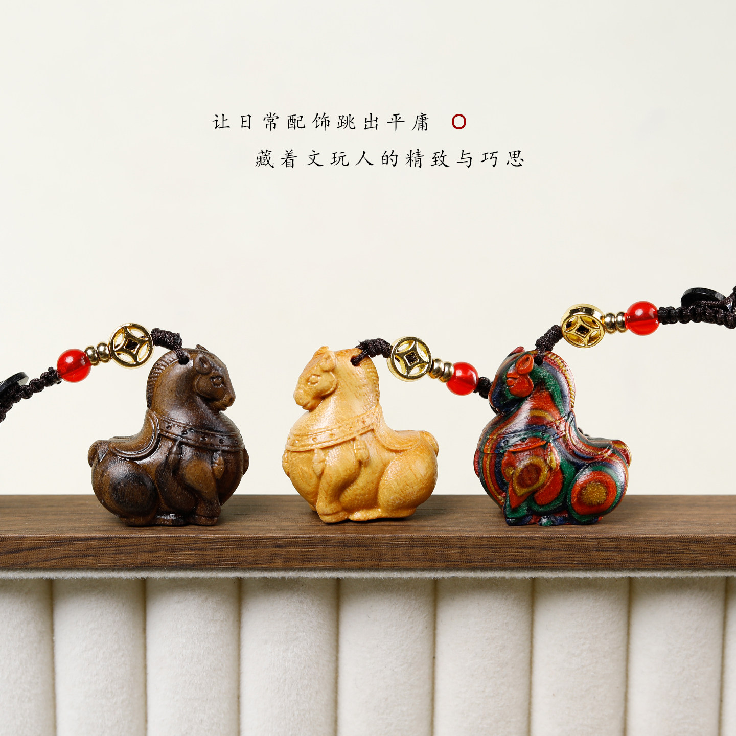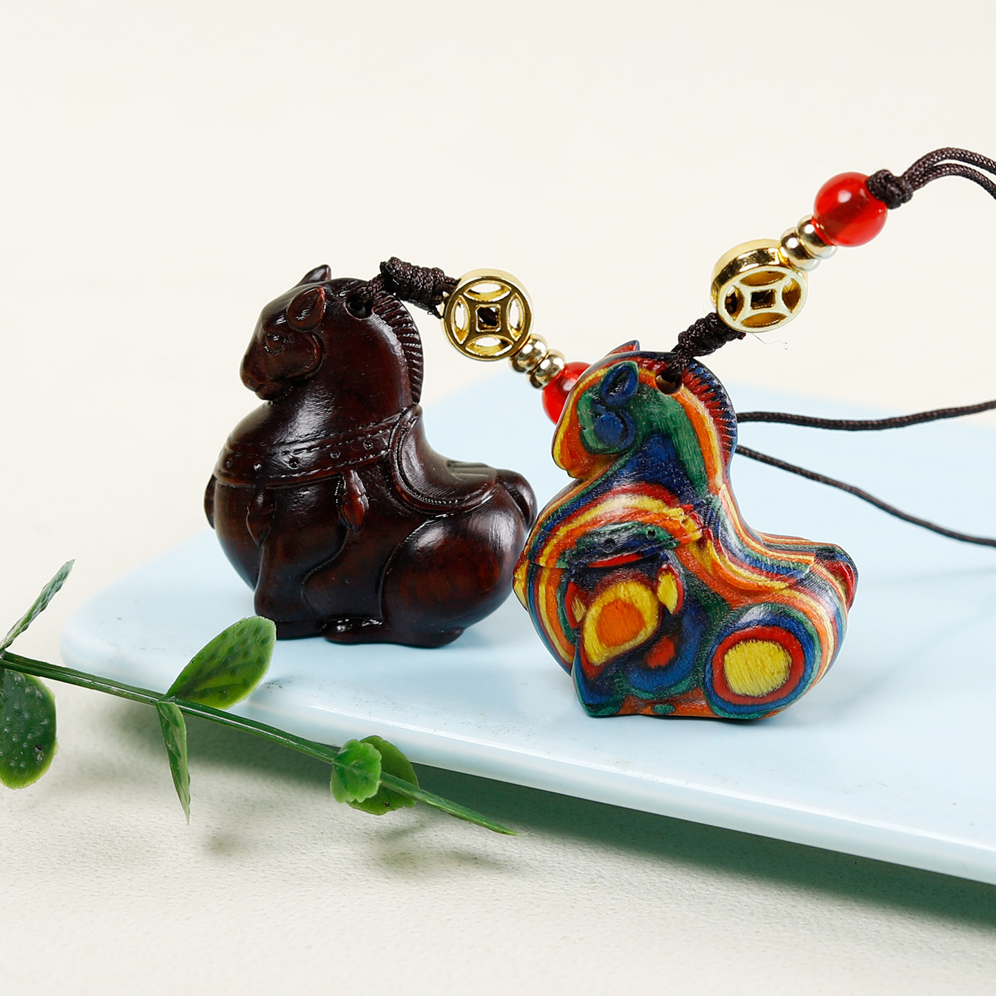 中国风紫檀木唐马手机链复古挂件diy吊坠马上发财包包钥匙扣挂饰