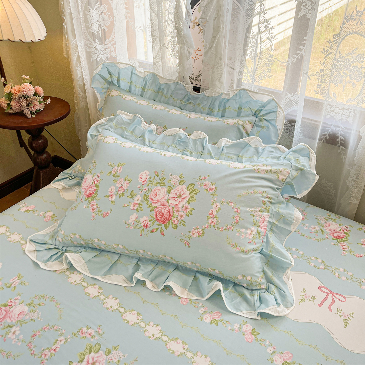 全棉田园风荷叶花边纯棉枕套一对装48x74cm单人枕头皮枕芯内胆套