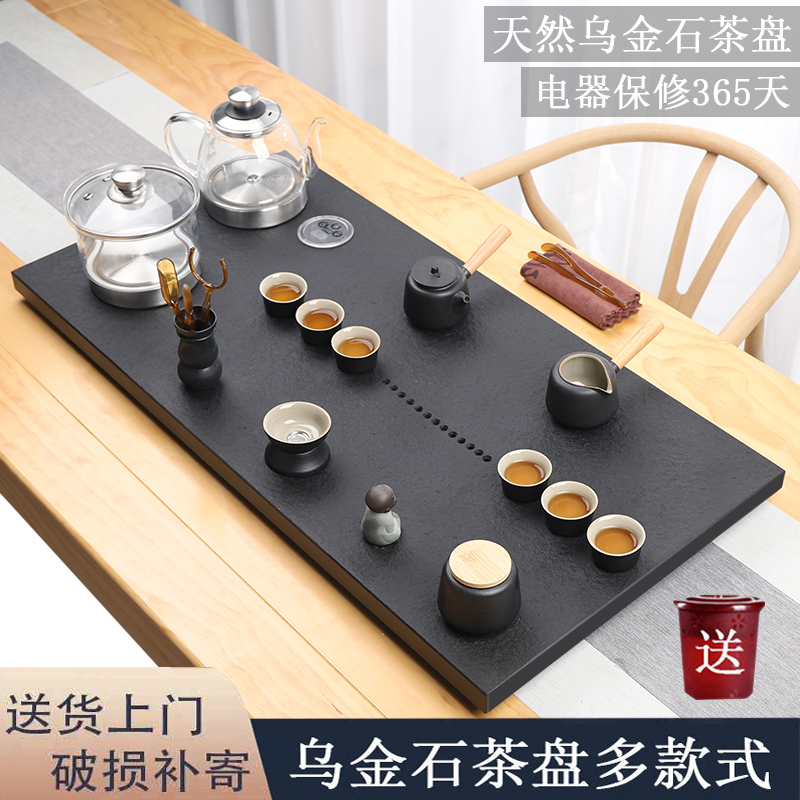 天然乌金石茶盘茶具套装全自动上水茶台烧水壶一体电磁炉家用茶海