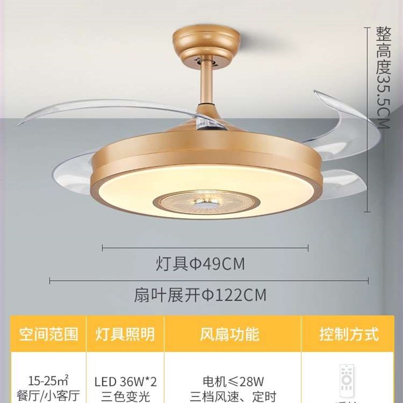 领王隐形风扇灯吊扇灯大风力客厅餐厅卧室家用一体带2021新款吊灯