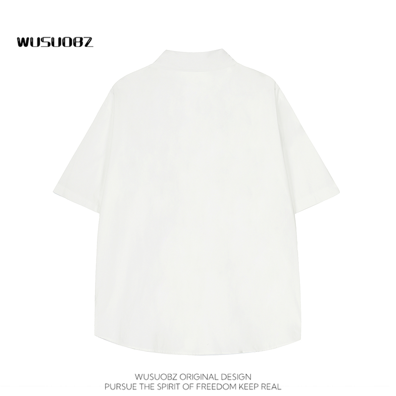 WUSUOBZ 学院风花卉刺绣短袖衬衫男女2025夏季宽松休闲情侣衬衣