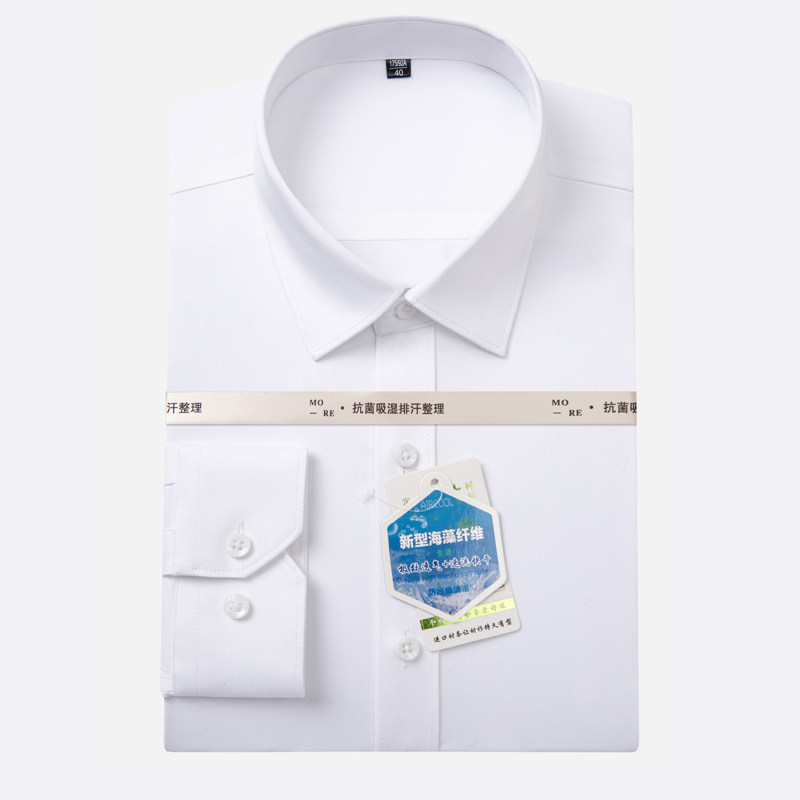 海藻纤维男士白色长袖商务免烫衬衫结婚休闲男女衬衣职业正装衬衫