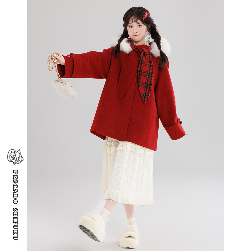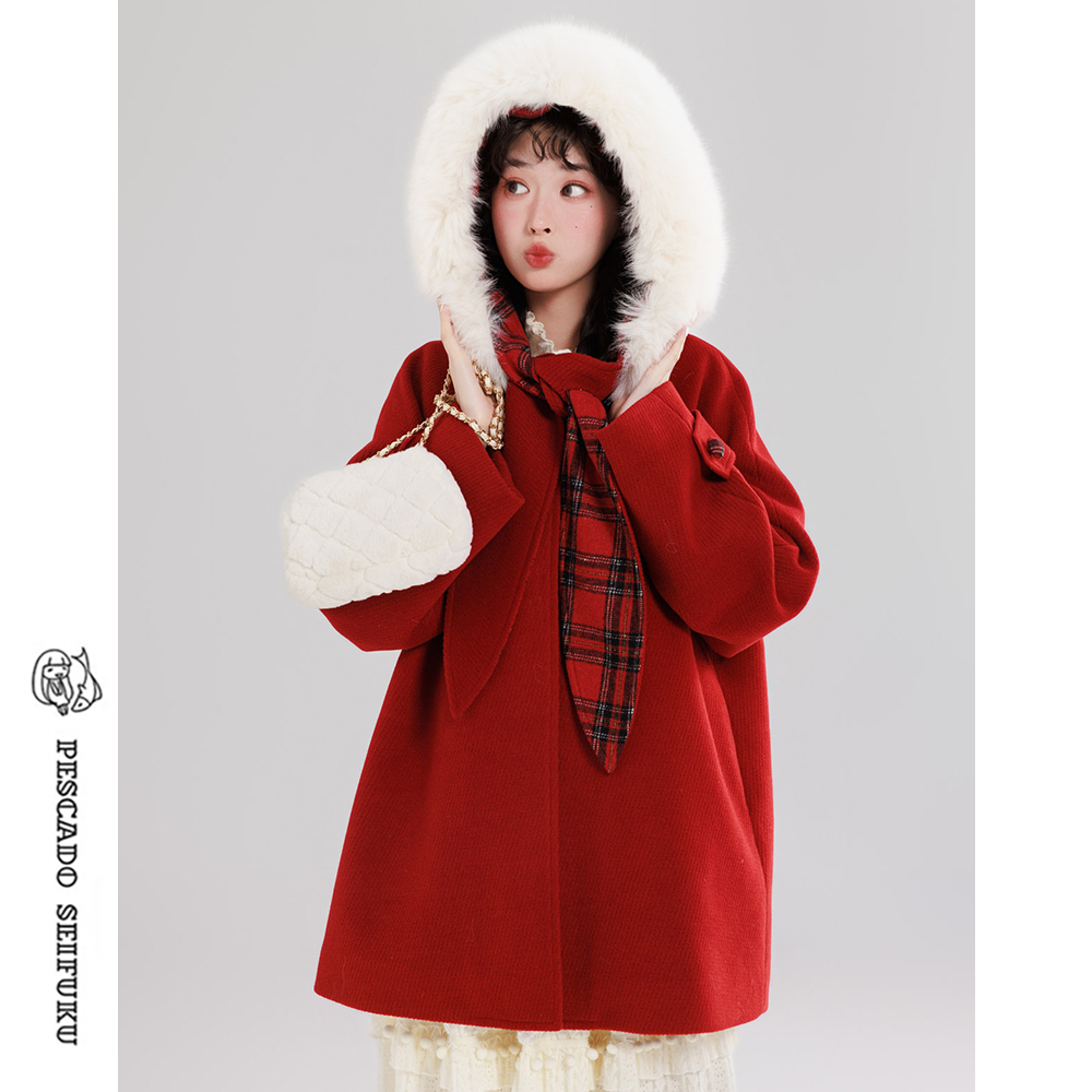 咸鱼衣橱[红炉点雪]新年穿搭红色大衣女秋冬小个子新年毛呢外套