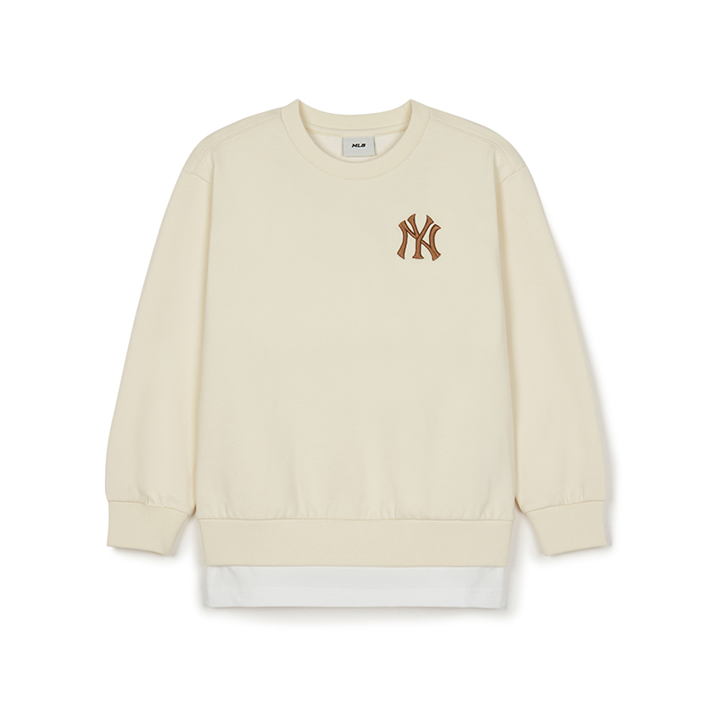 24新款MLB儿童卫衣男女童NY镂空大标假两件圆领套头衫7AMTB0544