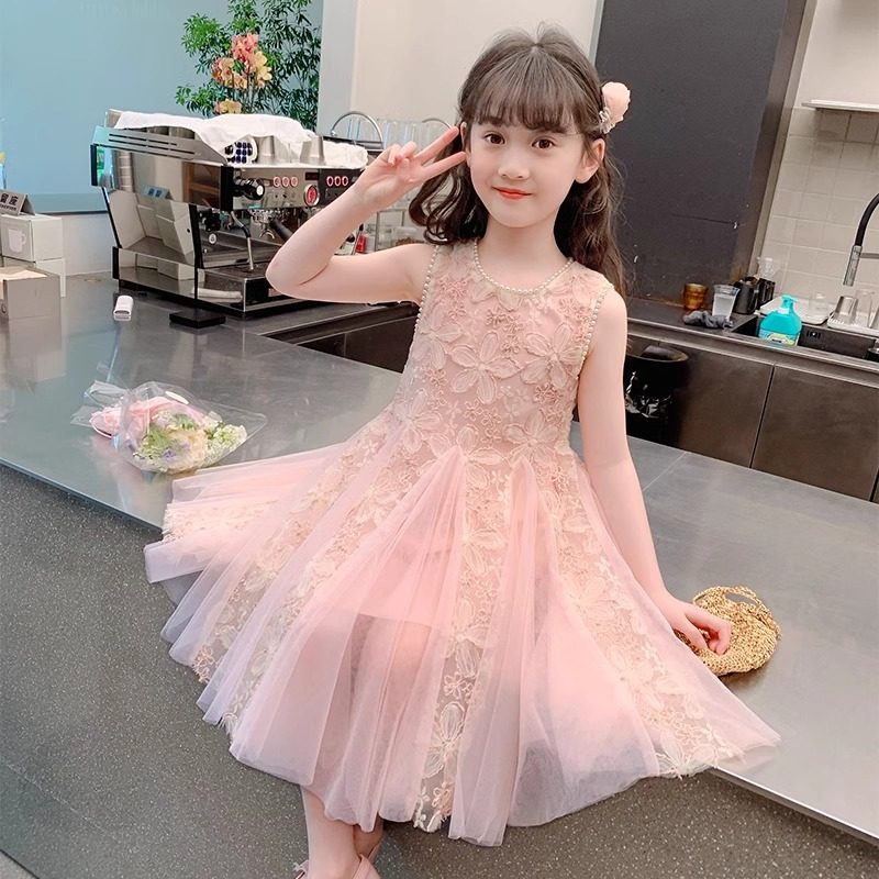 女童连衣裙夏装小女孩粉色网纱公主裙2025新款亲肤礼服洋气背心裙