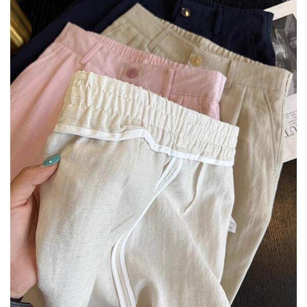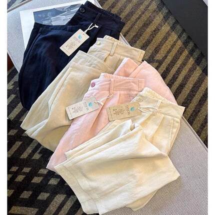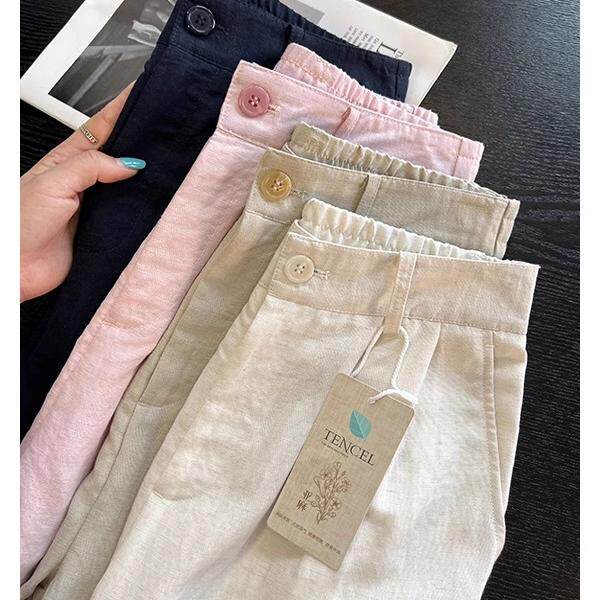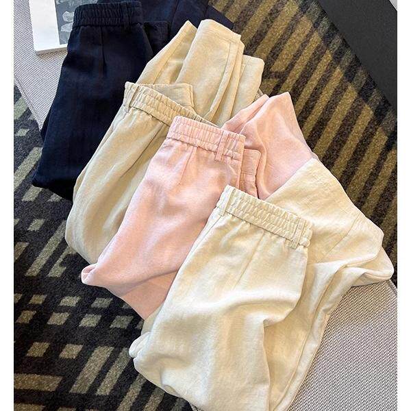 天丝亚麻砂洗9分直筒裤 简约老钱风夏季轻盈松弛休闲奶奶裤