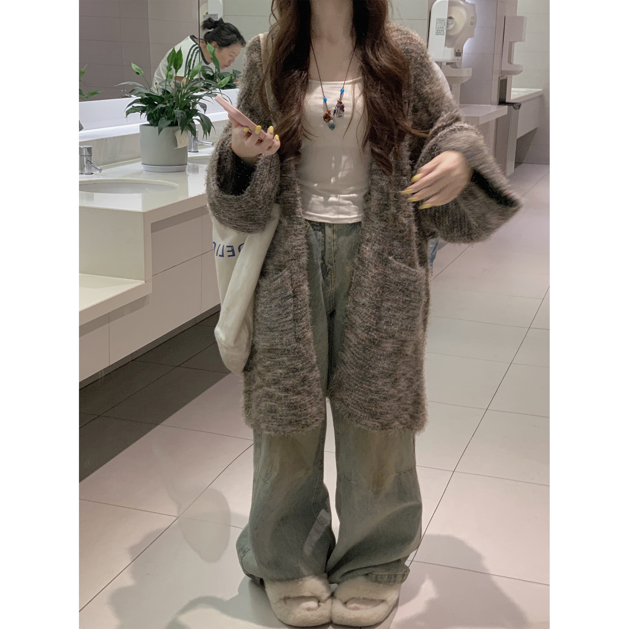 【WASEI水冰冰】宽松慵懒风针织开衫女2025秋季中长款毛衣厚外套
