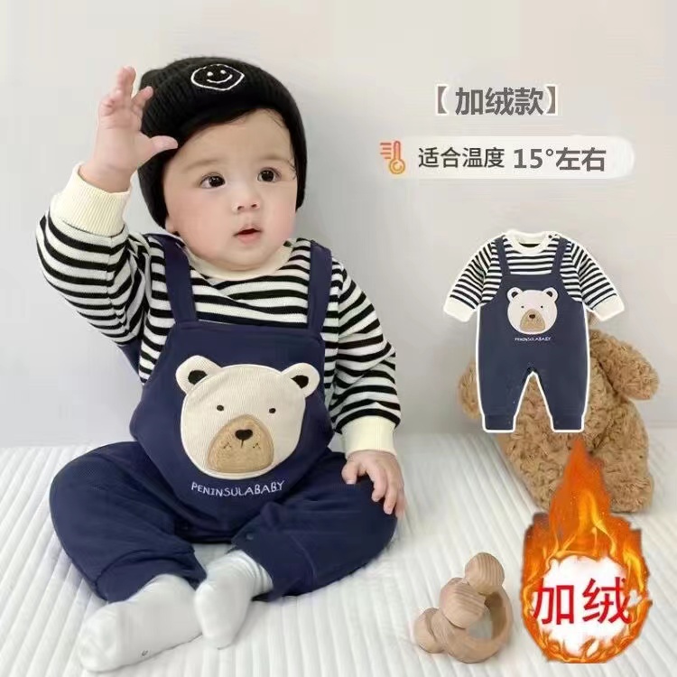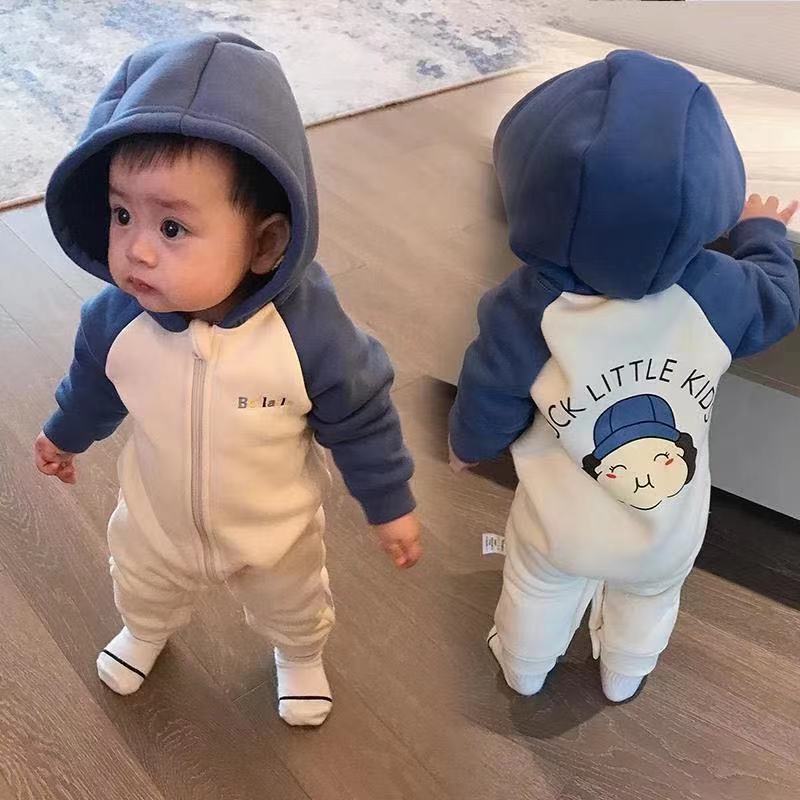 男宝宝连体衣冬季套装网红女婴儿加绒外出爬服哈衣新生儿冬装衣服