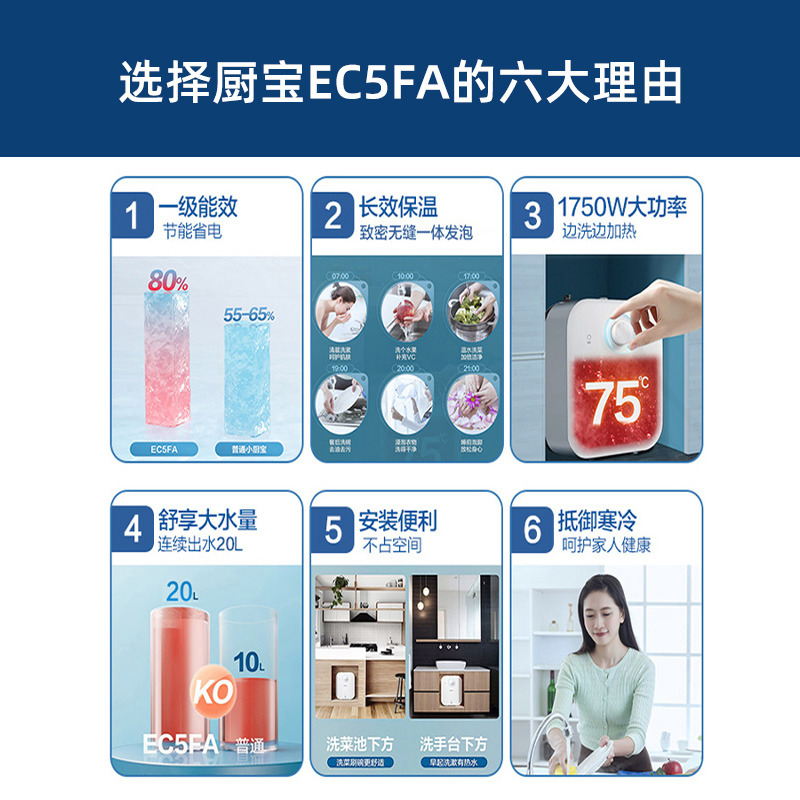 海尔小厨宝5升小型家用6.6厨房热水器11L上下出水统帅速热8储水式
