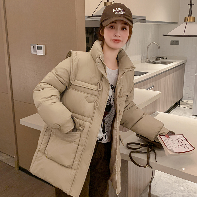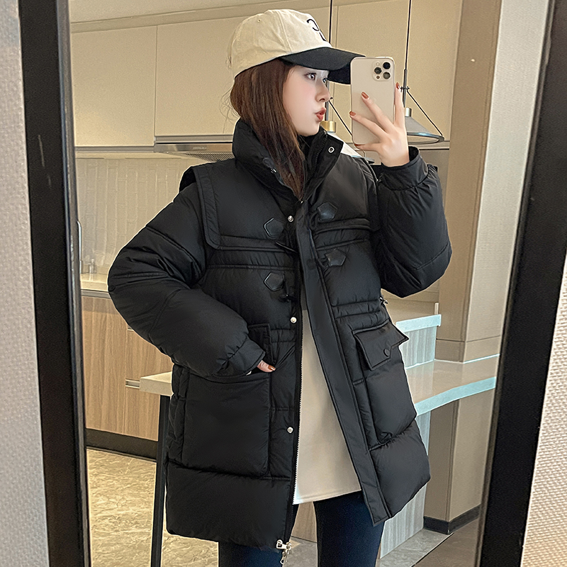 2025冬季新中长款羽绒棉服洋气女士宽松显瘦百搭收腰保暖加厚外套