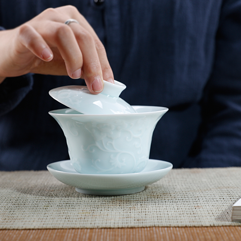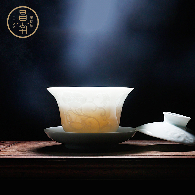 景德镇官方正品高温瓷茶具套装昌南旗舰店影青陶瓷高端盖碗一整套