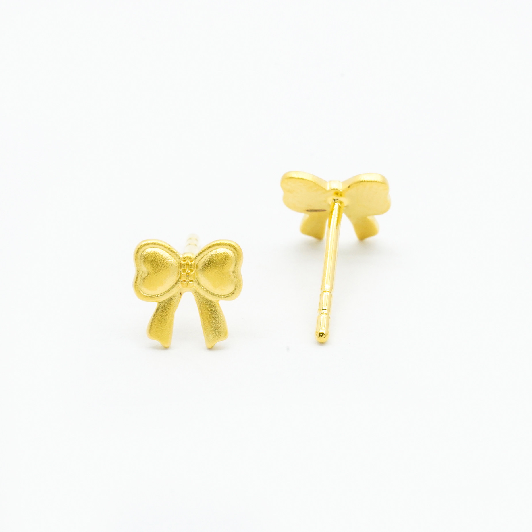 【店铺专属】18k金古法蝴蝶结耳钉女款轻奢耳饰【WT0358】不脱模