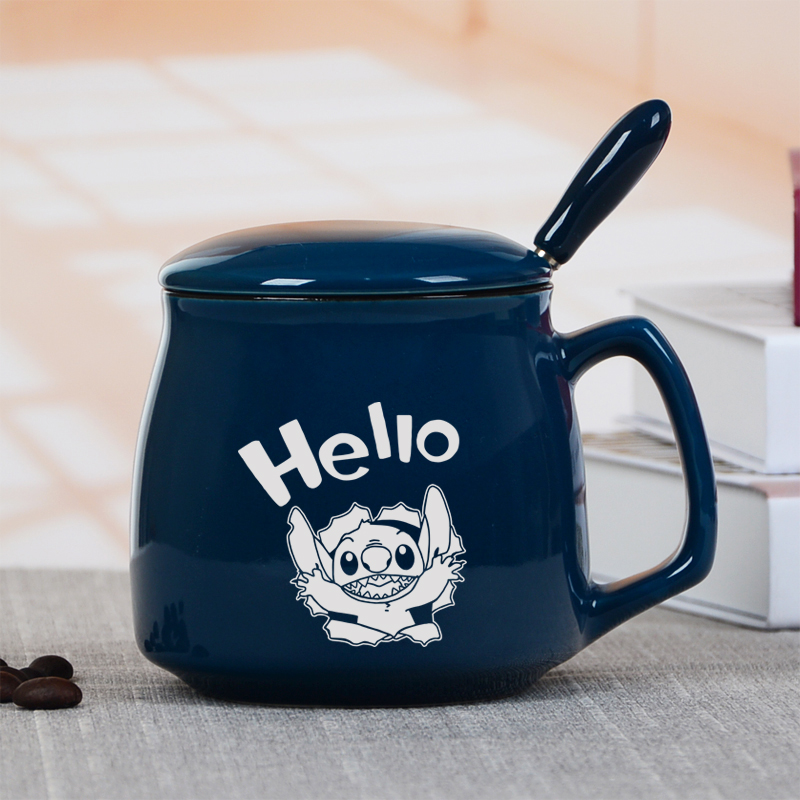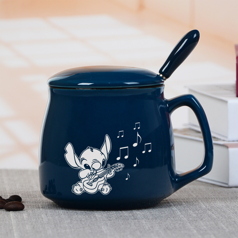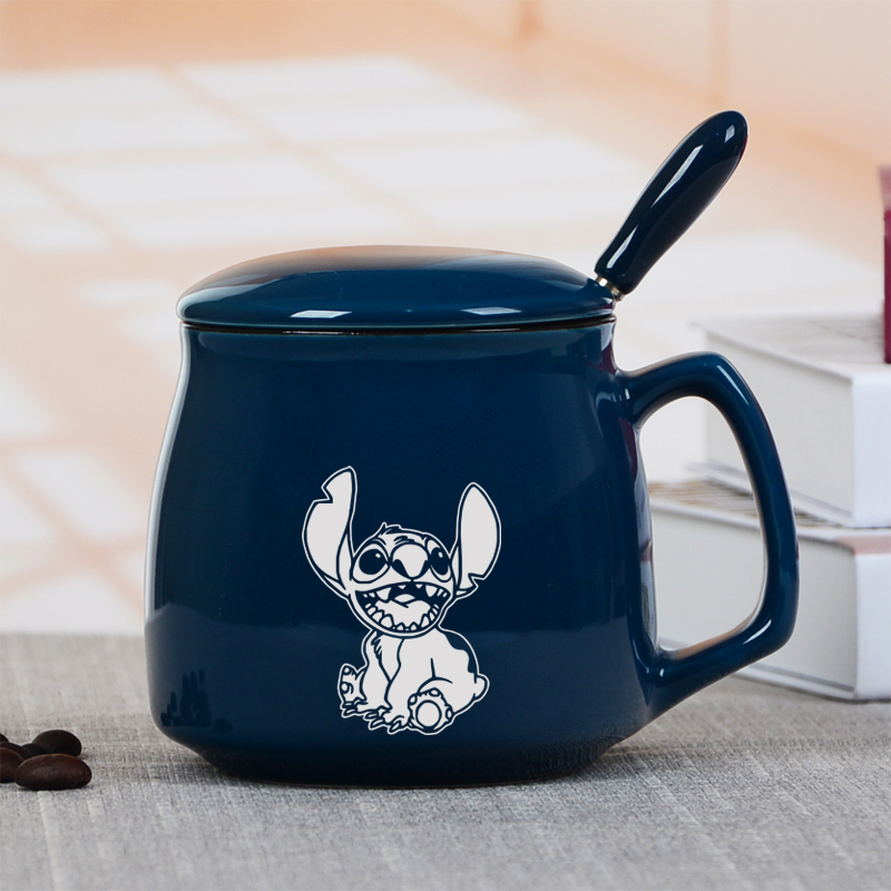 卡通史迪仔陶瓷杯子史迪奇雕刻创意马克杯带盖勺男女学生水杯刻字