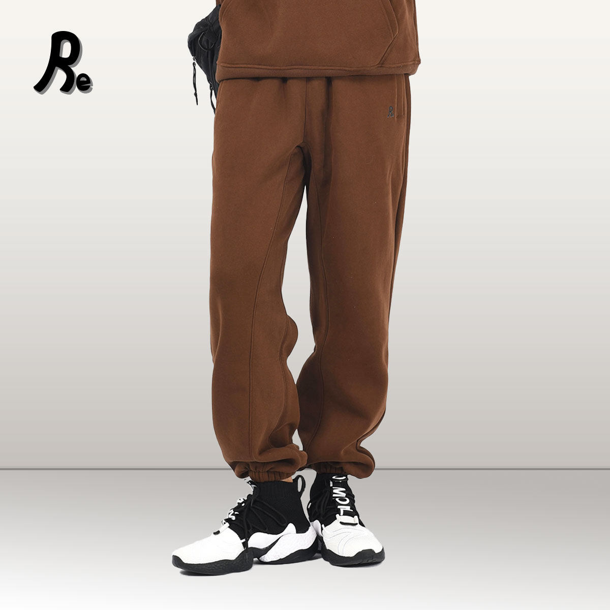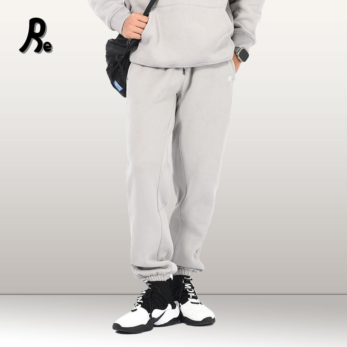六色新款RE冬季男女情侣加绒加厚重磅卫裤运动裤休闲束脚纯色裤子