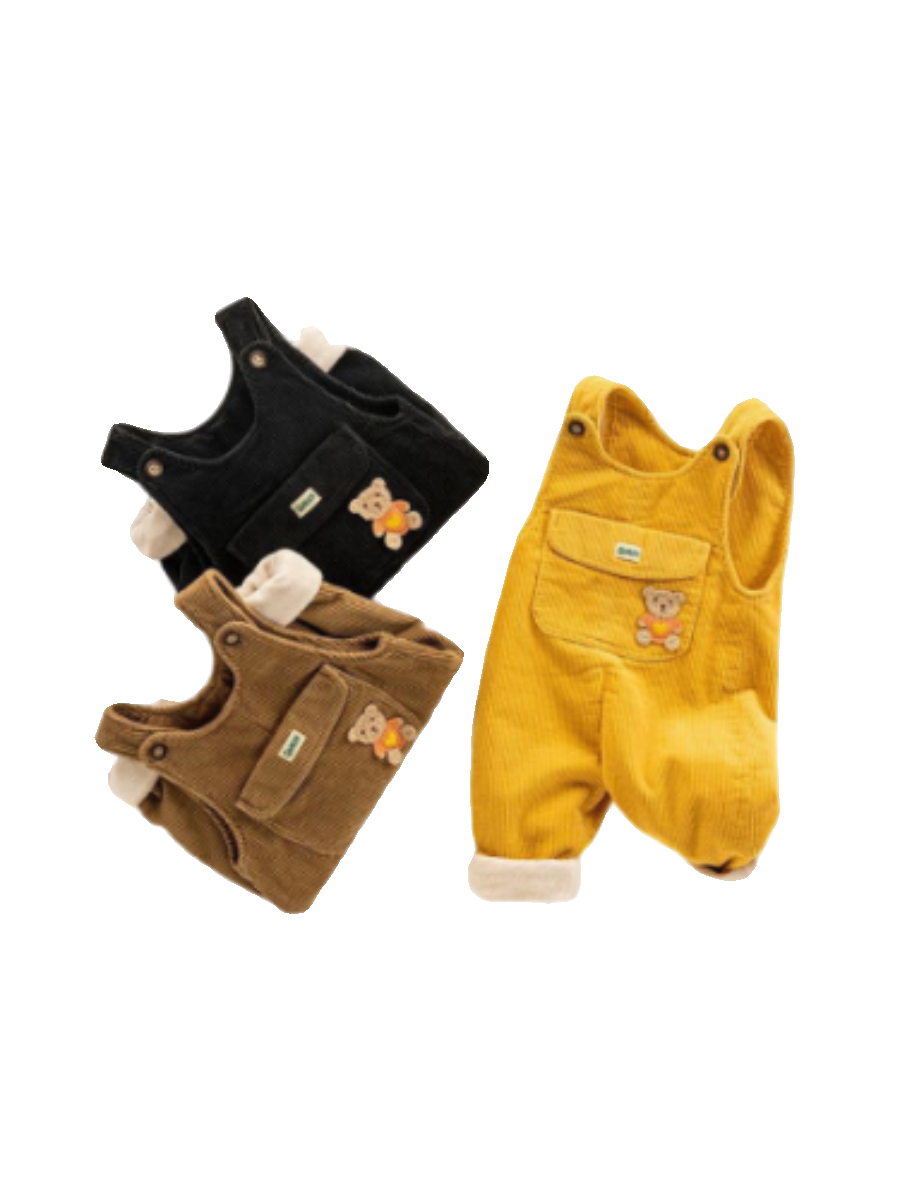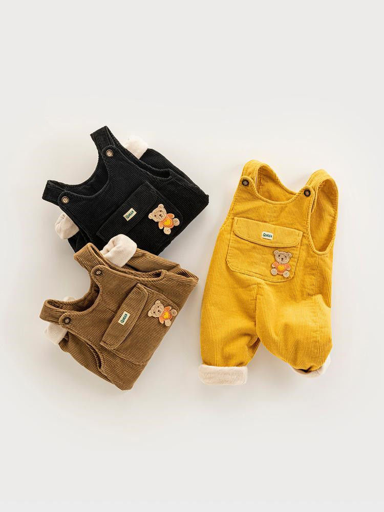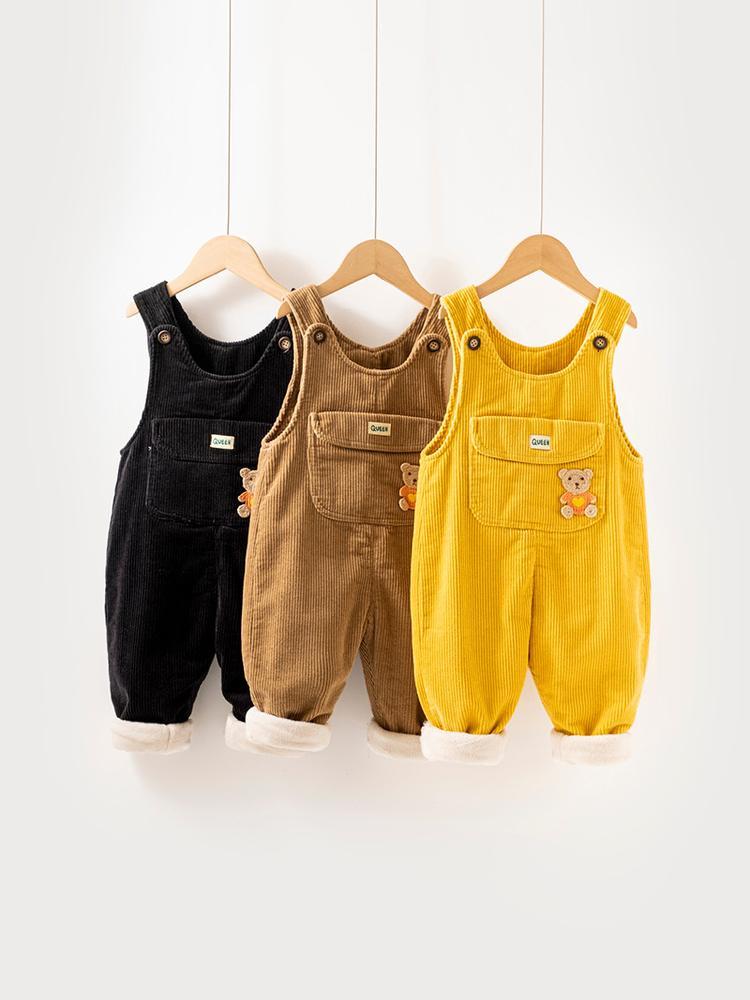 婴儿灯芯绒背带裤冬保暖护肚女小童加绒裤不掉肩男卡通宝宝棉裤潮
