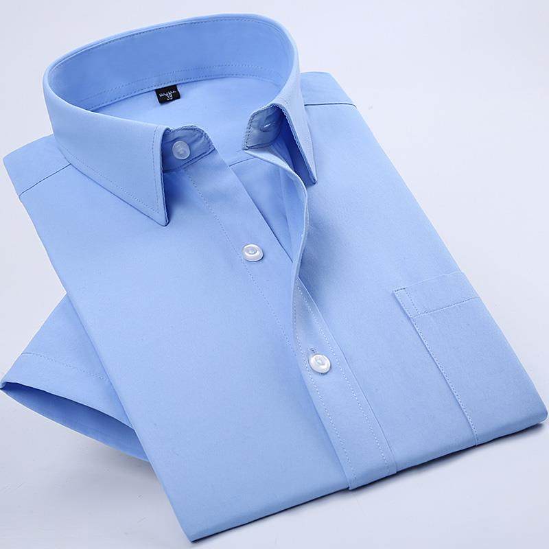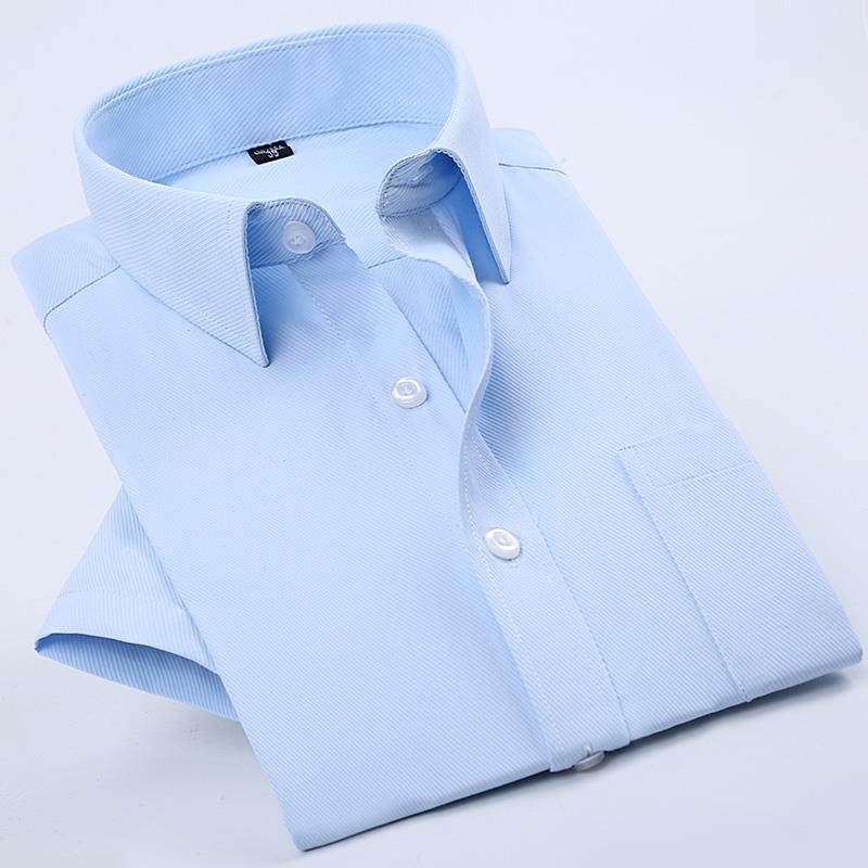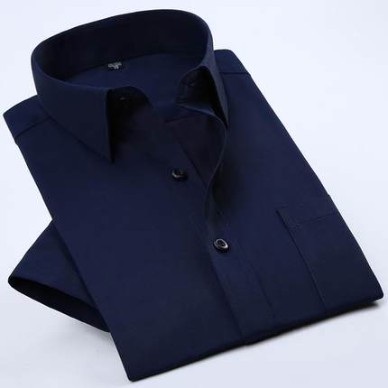 高档夏款衬衫男薄短袖青年商务职业工装纯黑色衣半袖季打衬底衫工