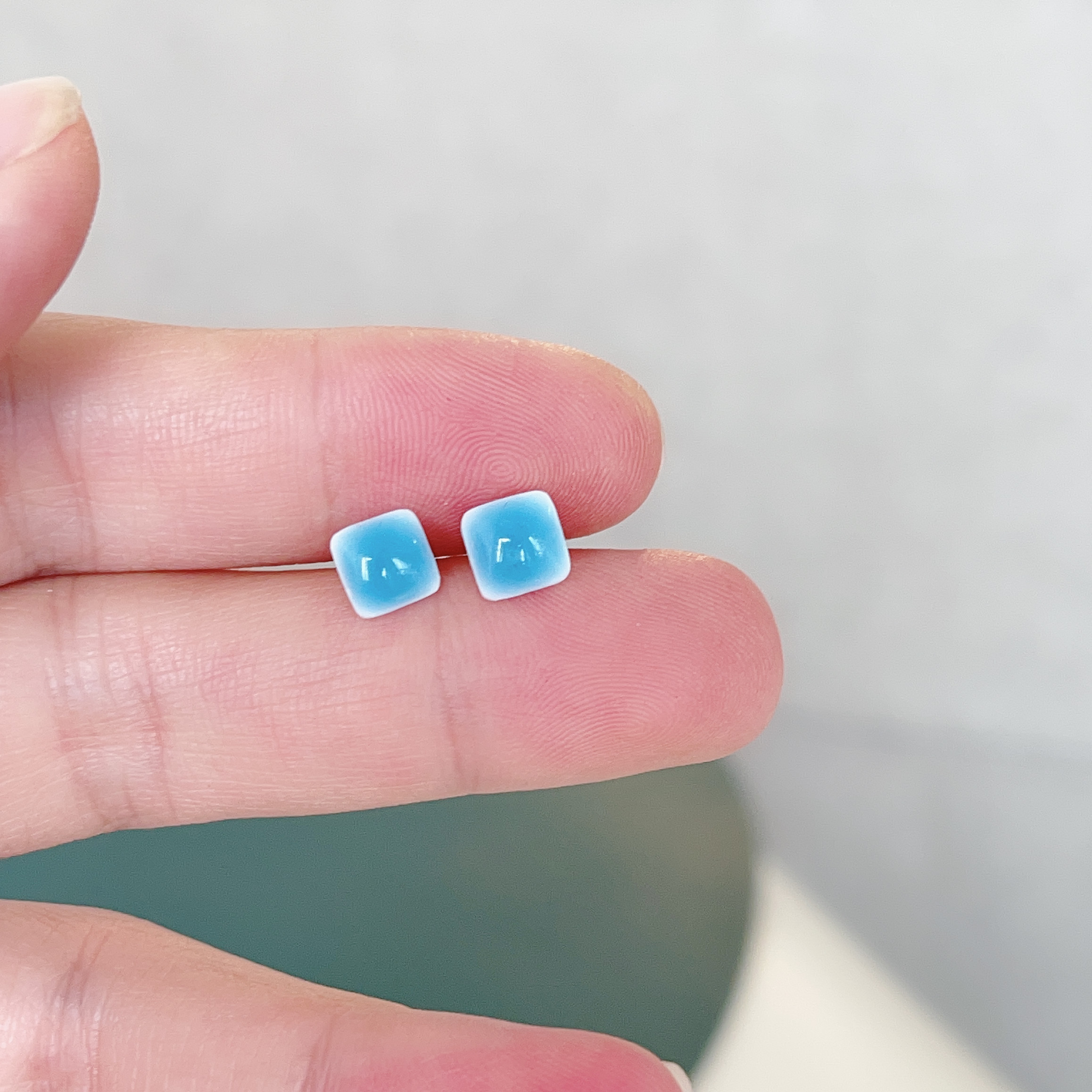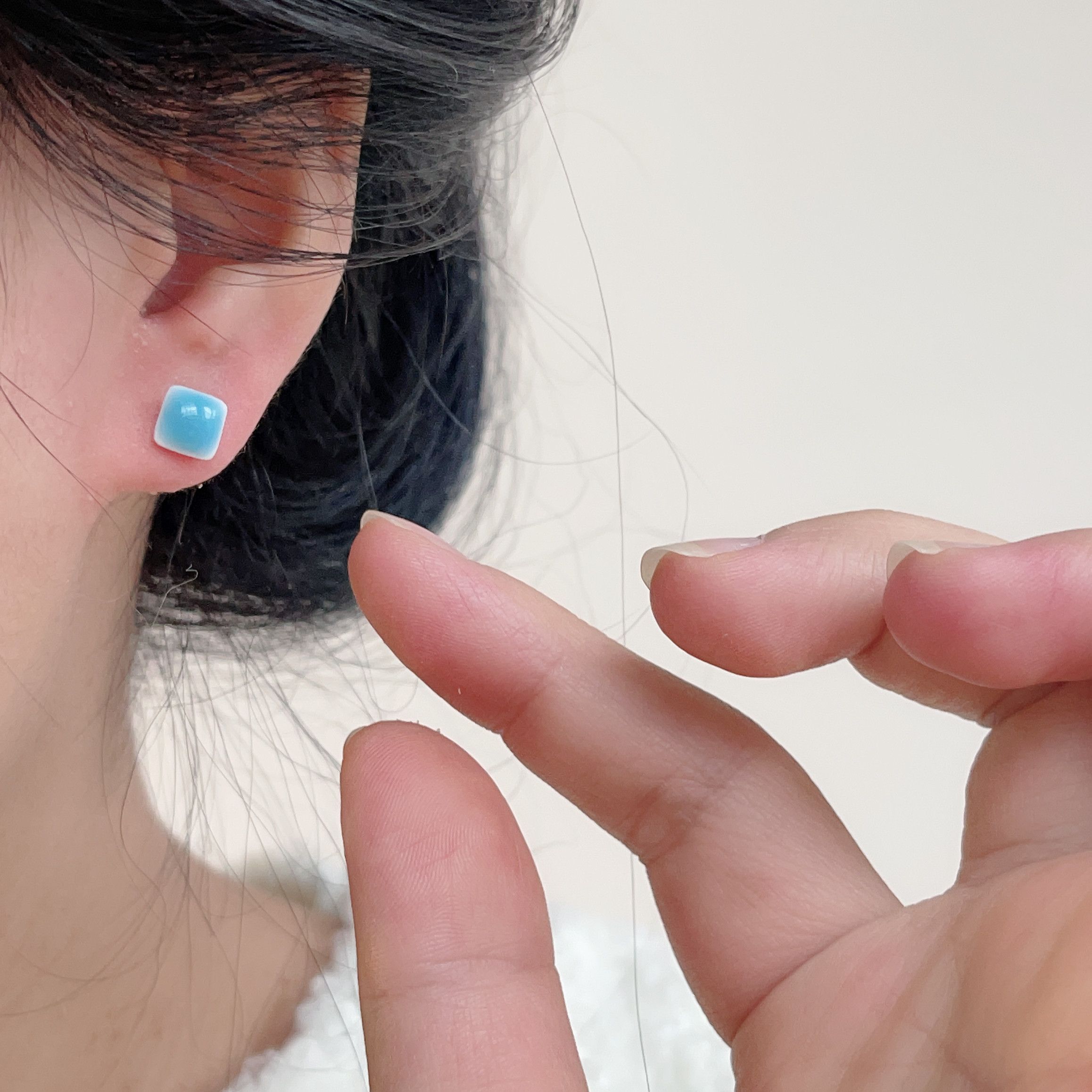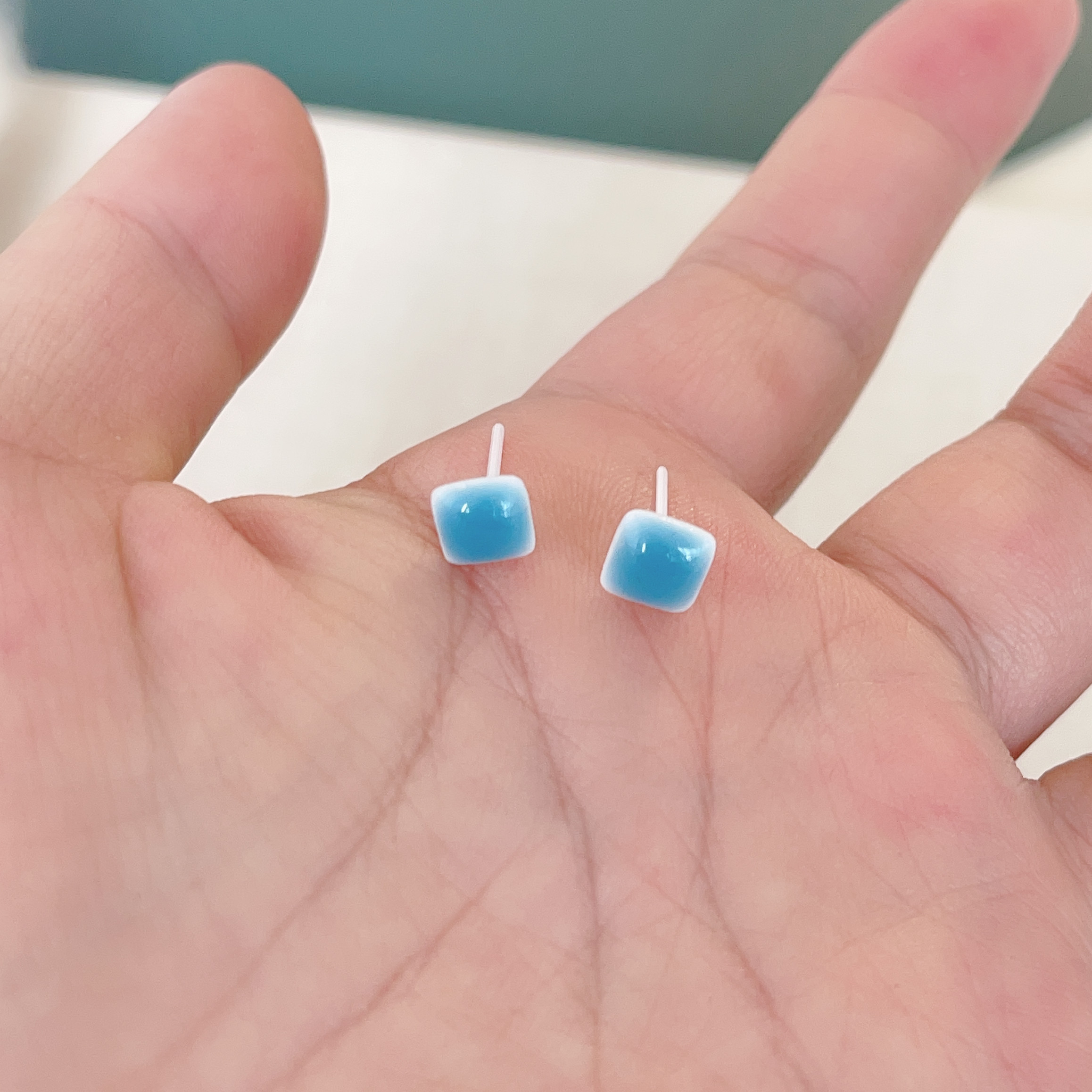 甜美小清新蓝色小方块耳钉简约小巧精致养耳洞耳饰学生耳环防过敏