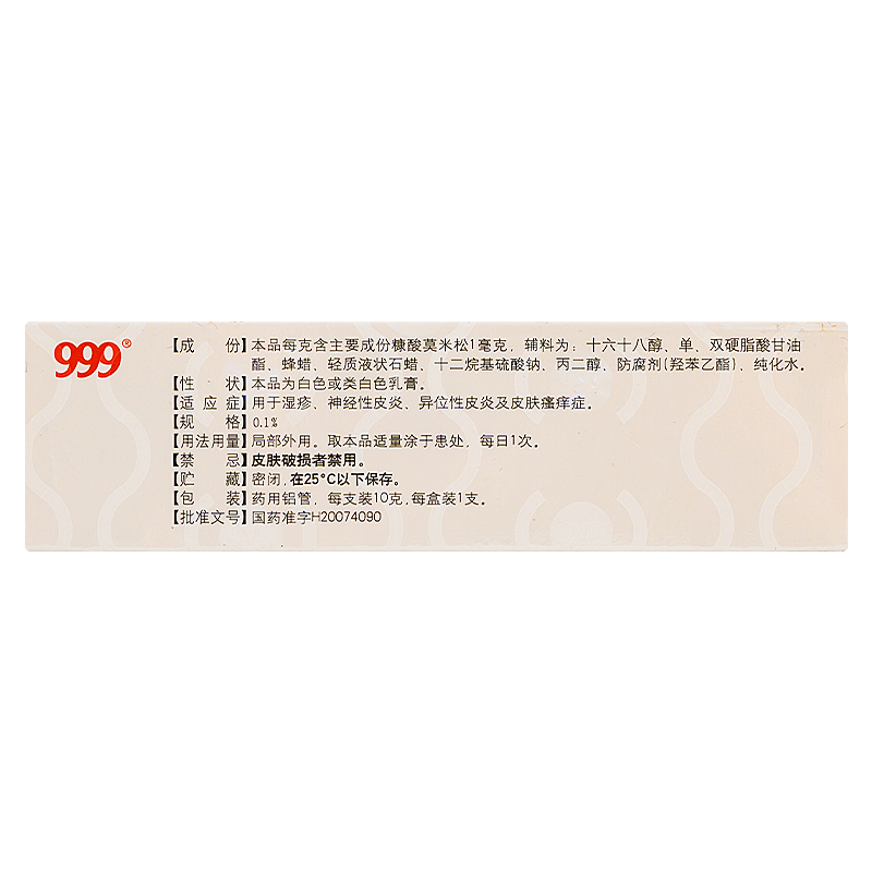 999糠酸莫米松乳膏10g湿疹神经性皮炎异位性皮炎皮肤瘙痒症