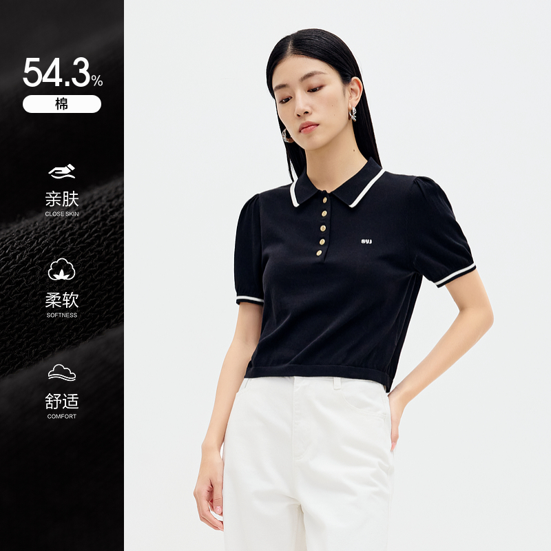 水云间miu系短款衬衫女POLO领短袖针织衫正肩上衣小资气质夏新款