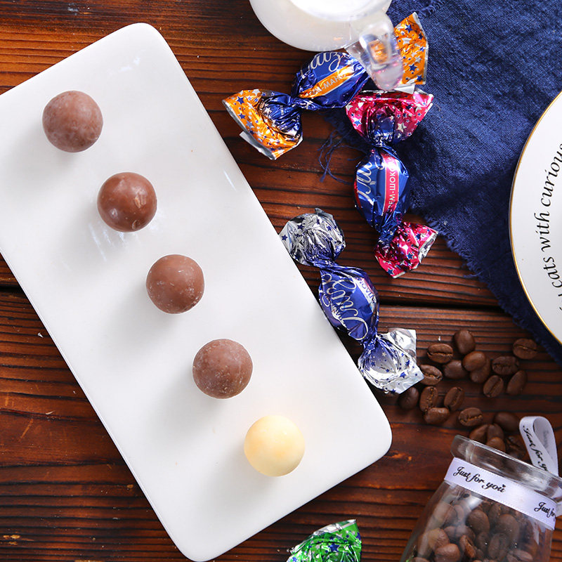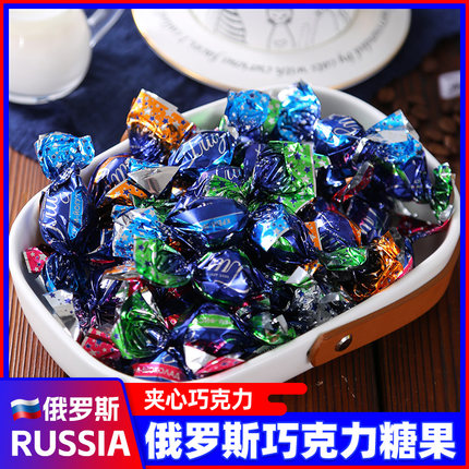 俄罗斯进口糖果巧克力球原装椰蓉松露味芒果味休闲零食品