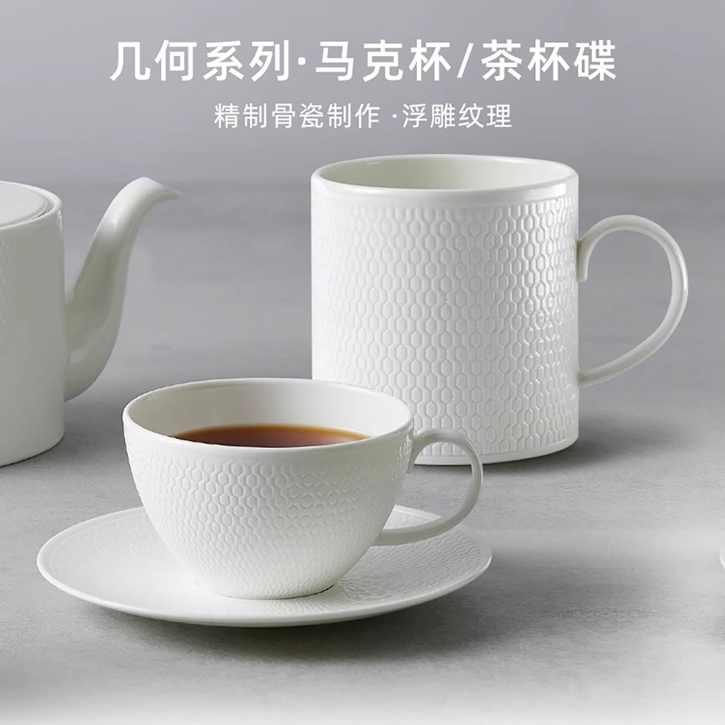 WEDGWOOD几何骨瓷纯白茶杯马克杯