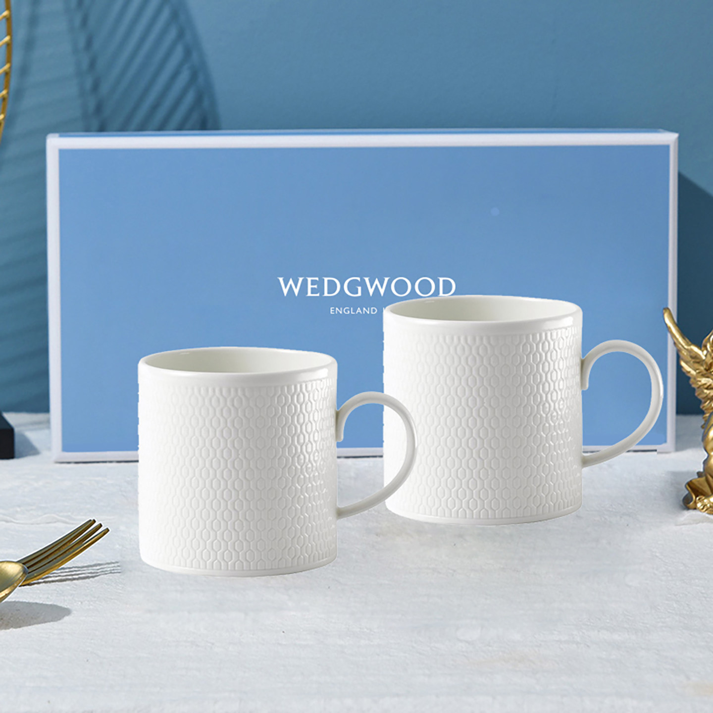 WEDGWOOD威基伍德GIO几何马克杯纯白简约骨瓷水杯咖啡杯对杯礼盒