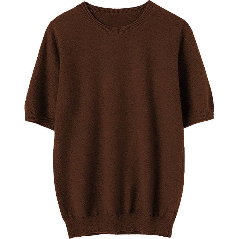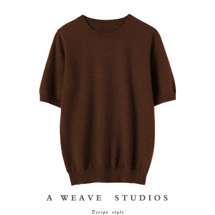 实穿王道!四季可穿100%山羊绒短袖女纯羊绒衫女圆领针织毛衣T恤