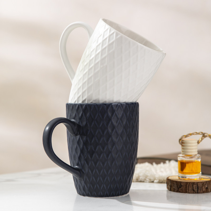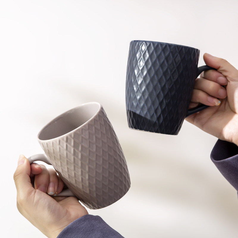 简约浮雕陶瓷水杯家用创意马克杯