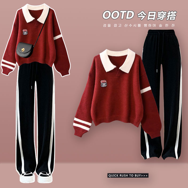 专柜撤柜品牌清仓大牌捡漏学院风毛衣针织套装女休闲阔腿裤两件套