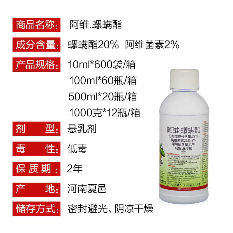 22%阿维菌素螺螨酯 柑橘树果树红蜘蛛农药杀螨杀卵若虫杀虫剂